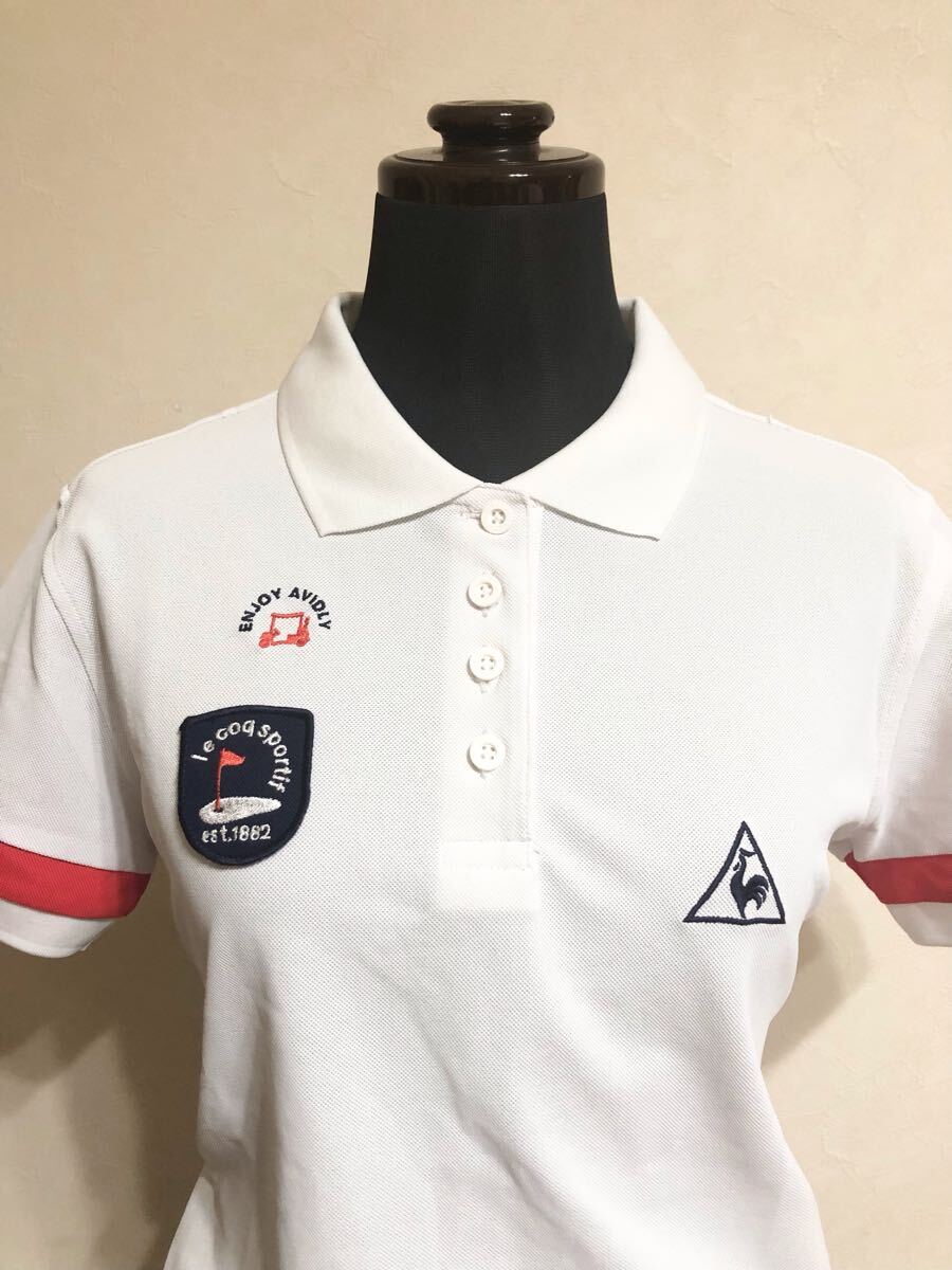 【品名】【良品】 le coq sportif golf ルコック ゴルフ ウェア レディース ドライ 鹿の子 ポロシャツ ワッペン トップス サイズL 半袖 白 QGL2643