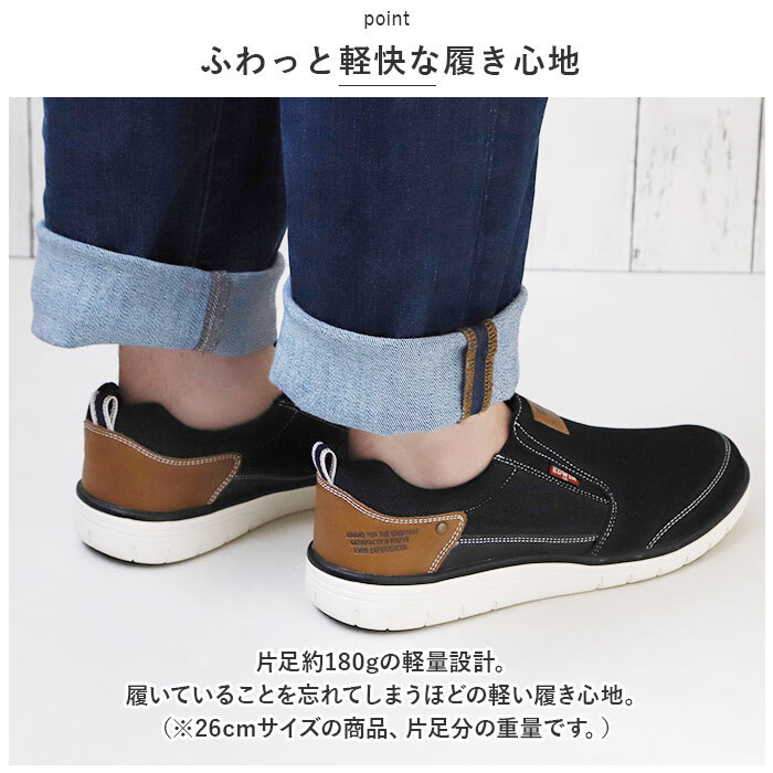 | 商品説明 | ・・・「ストレッチ素材×軽量設計」で、着用時のストレスフリー。日本発のNo.1デニムブランド「EDWIN」から、「メンズ 軽量ローカットスニーカー」が新登場。 ・【ふわっと軽快な履き心地】 ・片足約180gの軽量設計。履いていることを忘れてしまうほどの軽い履き心地で、軽快なフットワークを実現。(※26cmサイズの商品、片足分の重量です。) ・【幅広WIDE設計】 ・甲幅が広めの方でもゆったり履ける!つま先部分に締め付け感のない「幅広4Eワイド設計」。 ・【伸び~るストレッチ素材】 ・足の甲に当たるアッパー部分に、柔らかな風合いのデニム風ストレッチ素材を使用。包み込まれるようなフィット感でストレスフリー。 ・【疲れにくい、ふかふかインソール】 ・クッション性の高いカップインソールが、足裏にかかる衝撃を優しく吸収。長時間歩いても疲れにくく、快適な歩行スタイルをサポート。 ・【柔らかな履き口がフィット】 ・履き口周りも厚みのあるクッション生地で仕上げ、足首やかかとを靴ズレから優しく保護。 ・【楽に履けて、オシャレ】 ・履き口両サイドのサイドゴアで、サッと脱ぎ履きができるスリッポンタイプ。つま先がスッと入り、快適なフィット感。 ・【軽量なのに滑りにくい!】 ・ブロック型の凹凸が刻まれたアウトソールで、雨に濡れた路面でもしっかりとグリップ。 ・【清潔感のある足元を演出】 ・デニム風のカジュアルな生地感がジーンズスタイルと相性抜群。「EDWIN」のレザータグと赤いピスネームが足元の印象的なアクセントに。 ・【EDWIN History】 ・1961年に日本で初めて国内縫製のブルージーンズを誕生させた「EDWIN」。創業から現在に至るまで、永遠の定番「EDWIN 503」を始め、時代と共に進化し続けるNo.1デニムブランド。 |