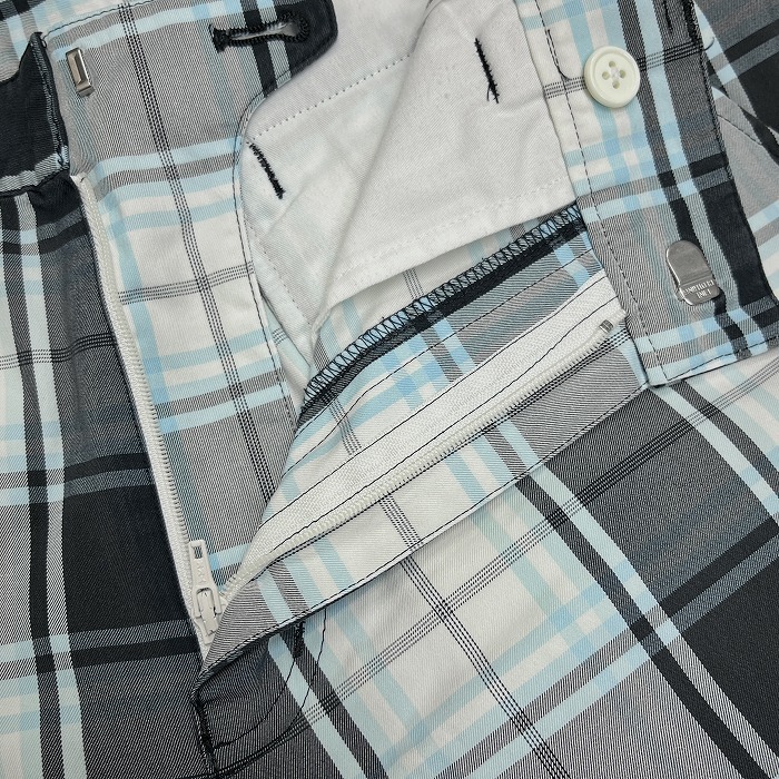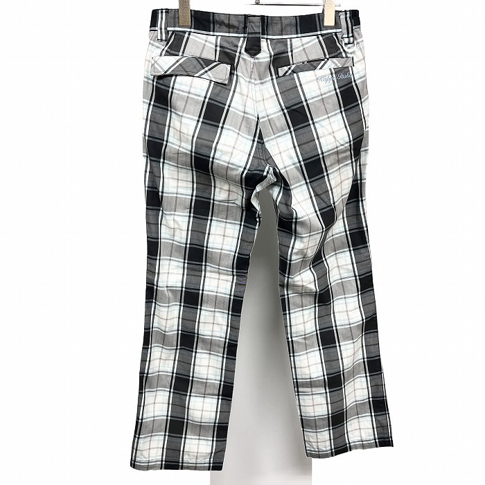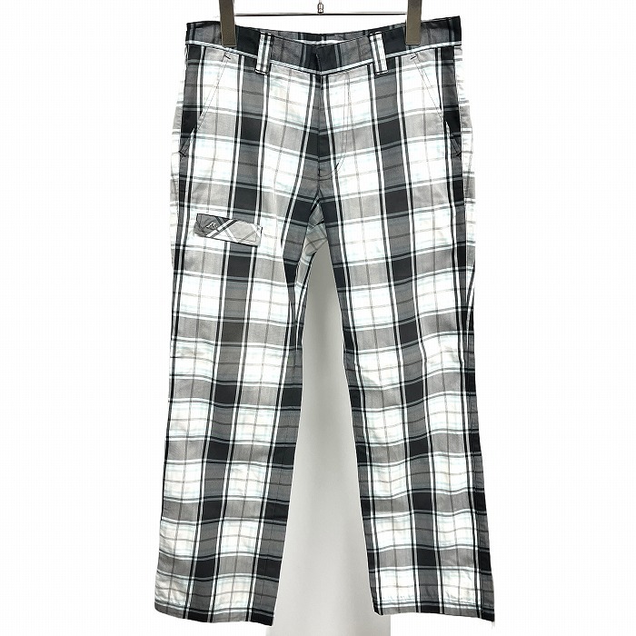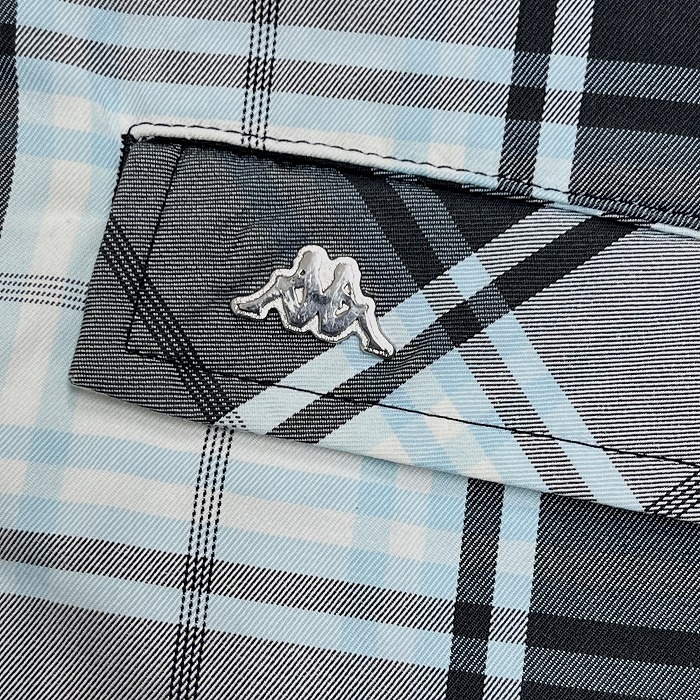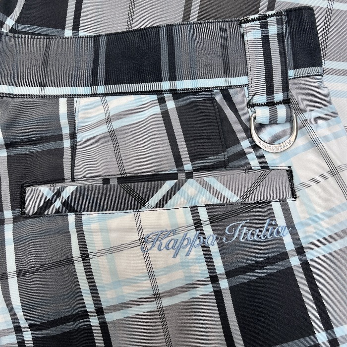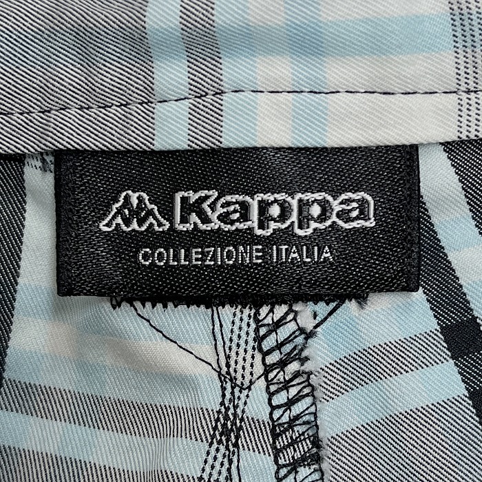 商品タイトル | カッパ KAPPA 少し薄手 パンツ チェック Dリング付き 刺繍 ロゴプレート 綿×ポリエステル×ポリウレタン 79 ブルー 青×黒×白 メンズ |
