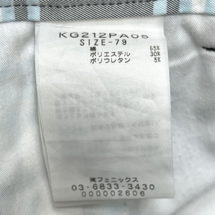実寸サイズ | (タグ表記:79) ・裾幅21cm ・ウエスト79cm ・股上24cm ・股下71cm ・ヒップ102cm ・わたり幅31cm |