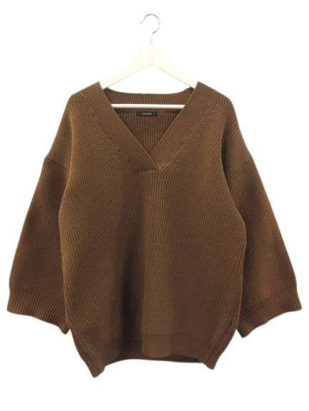 ジーナシス JEANASIS 5GスポンディッシュVプルオーバーニット 長袖 ブラウン 茶色 トップス レディース
