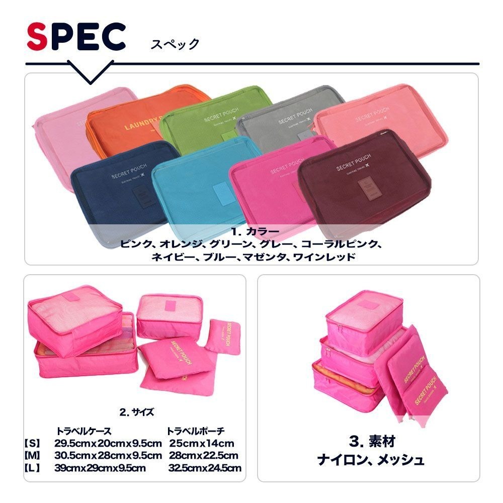 【新品】 トラベルポーチ 6点セット 旅行用ポーチ 収納 おしゃれ 可愛い 旅行 仕分け ケース 衣類 ポーチ ピンク