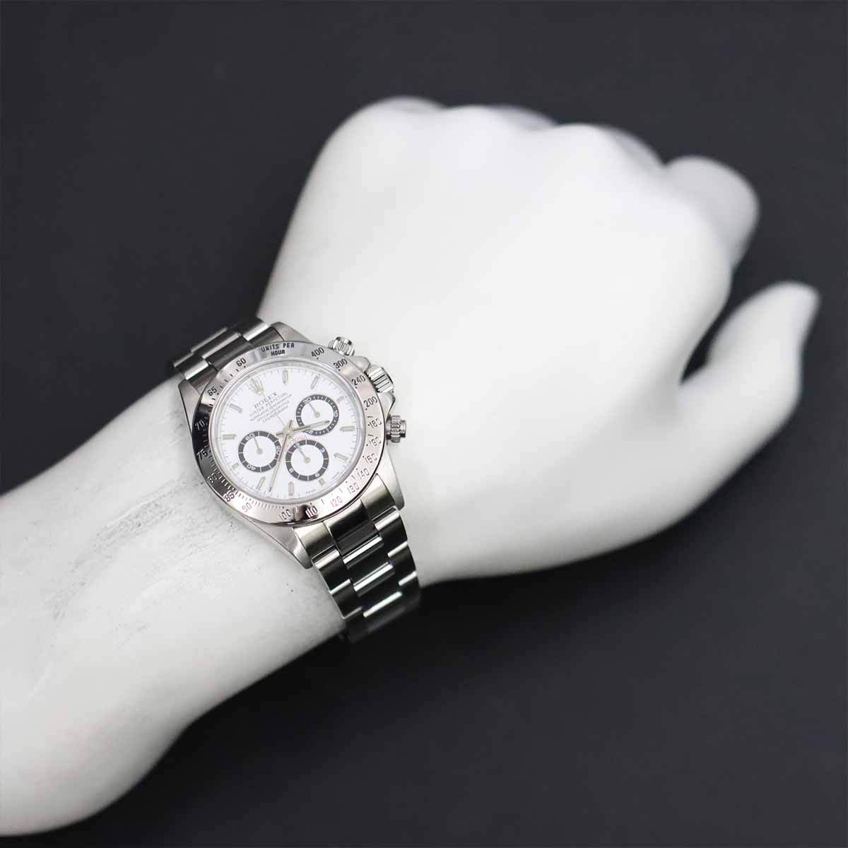 | 商品概要 | 今なお時計ファンから厚い支持を得続ける『デイトナ 16520』です。クロノグラフの名機エルプリメロをベースにしたCal.4030を搭載し、1987年から2000年まで製造されたロングセラーモデルです。ステンレスで形成されたベゼルが精悍な顔立ちで、全体をスタイリッシュに引き締めます♪ |