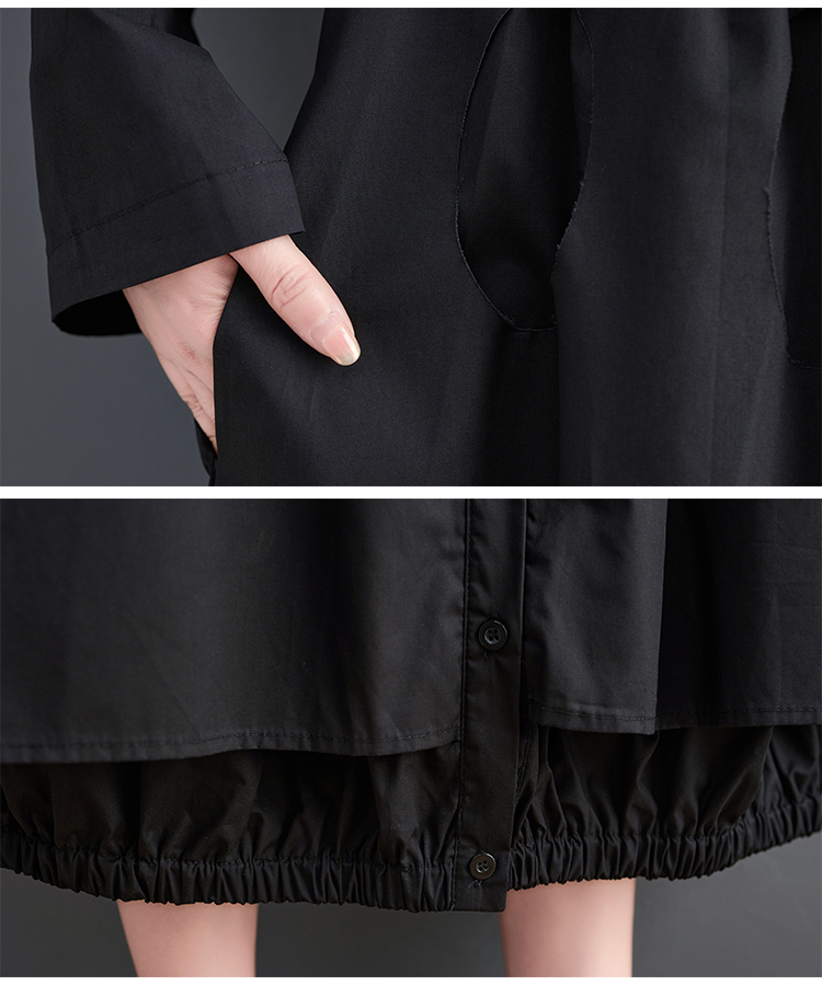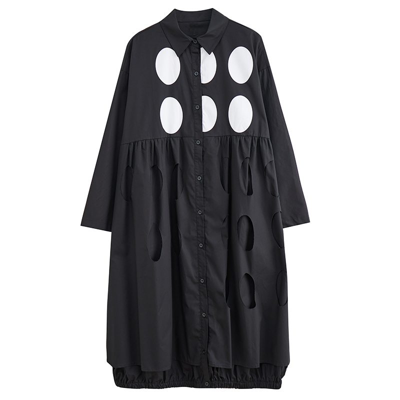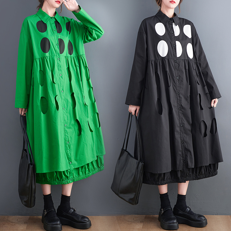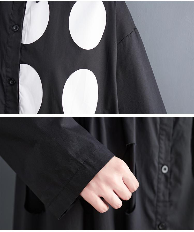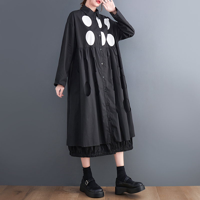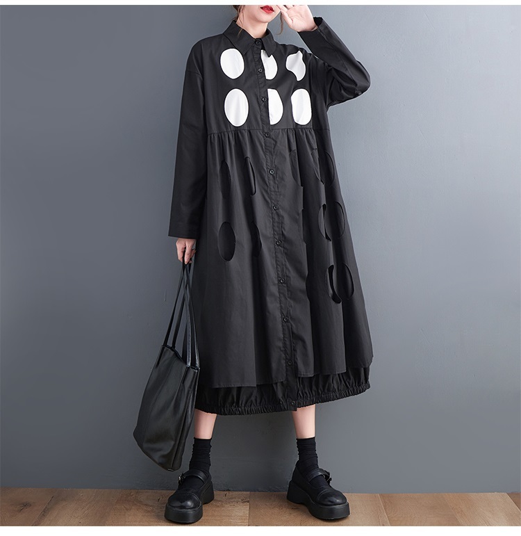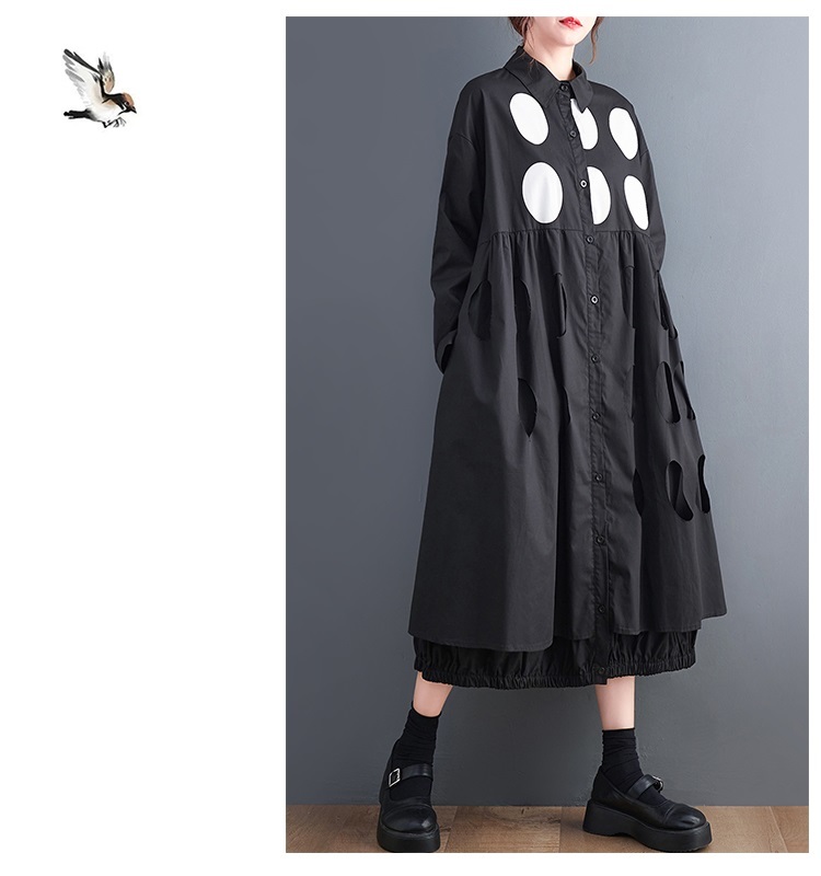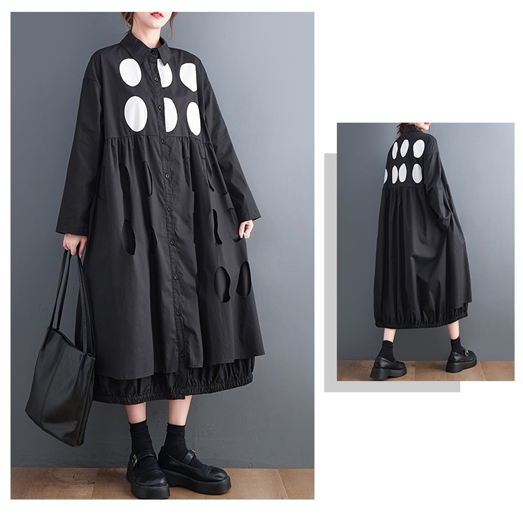 「同梱1万円送料無料」秋*新作*カジュアル*ゆったり大きいサイズ*体型カバー*個性*復古**ドット柄**シャツロングワンピース*黒