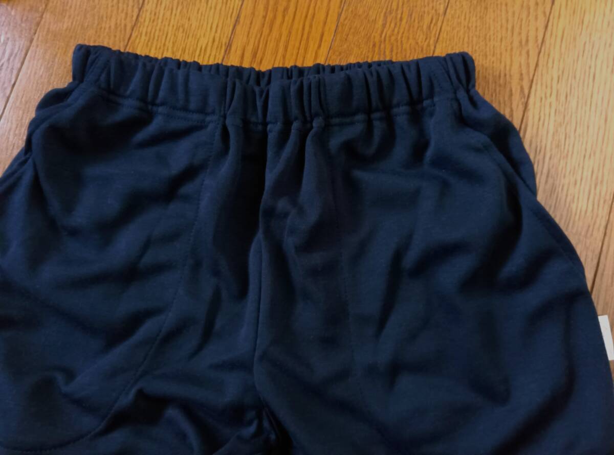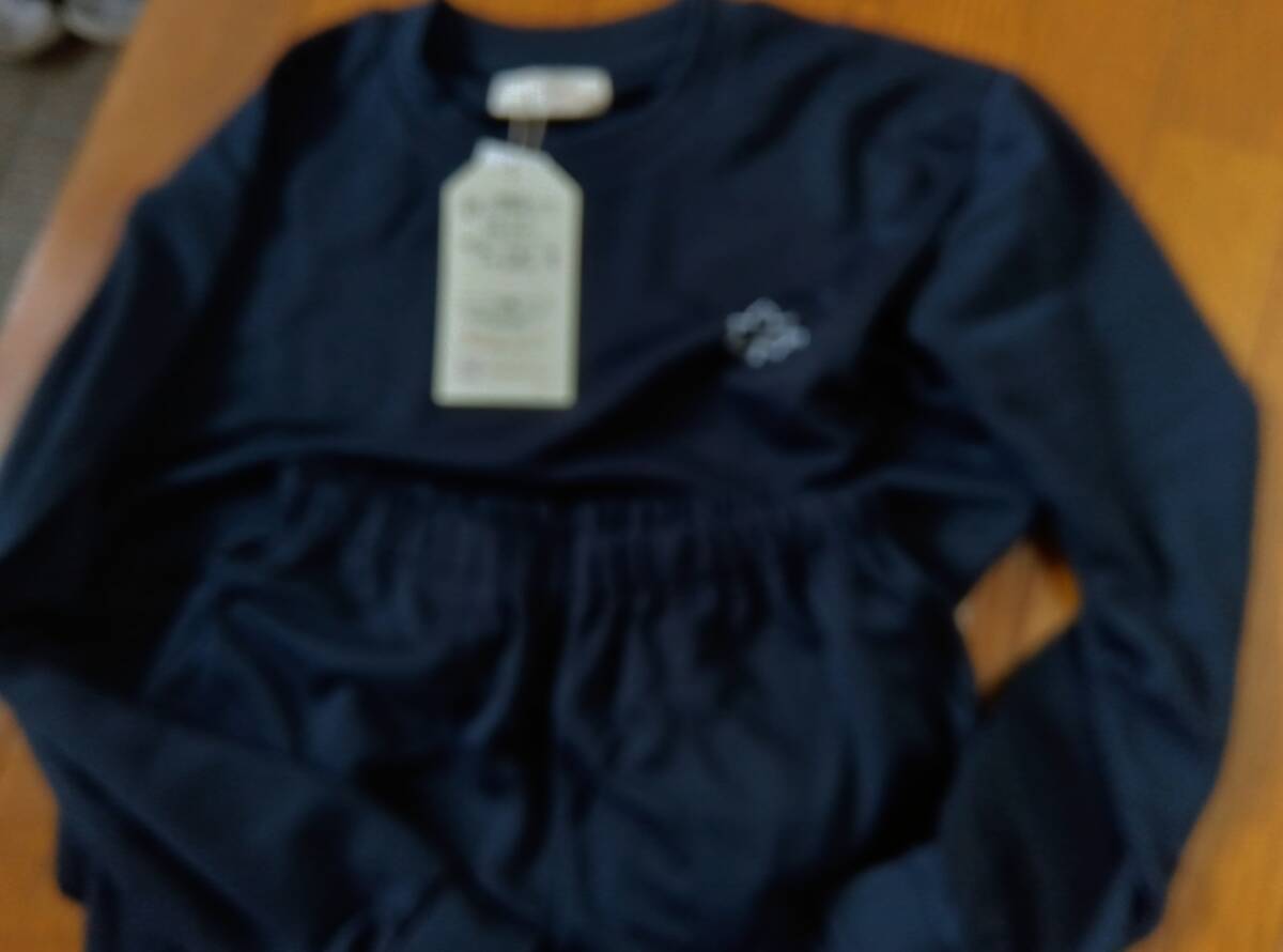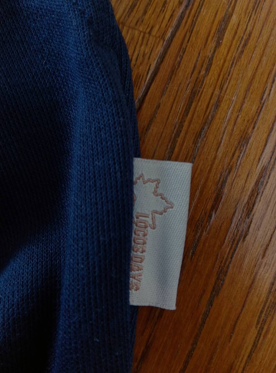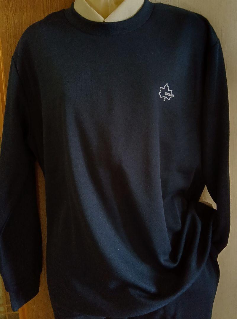 LOGOSのMサイズネイビー上下セット、ロゴ刺繍付き。