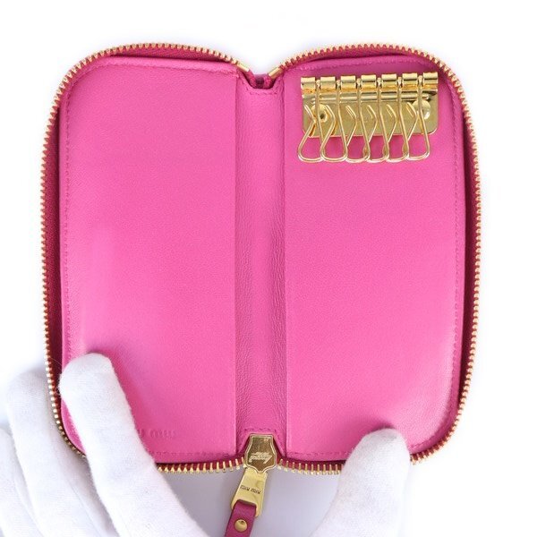 Aランク【ミュウミュウ】6連キーケース/マテラッセ/ピンク/レザー