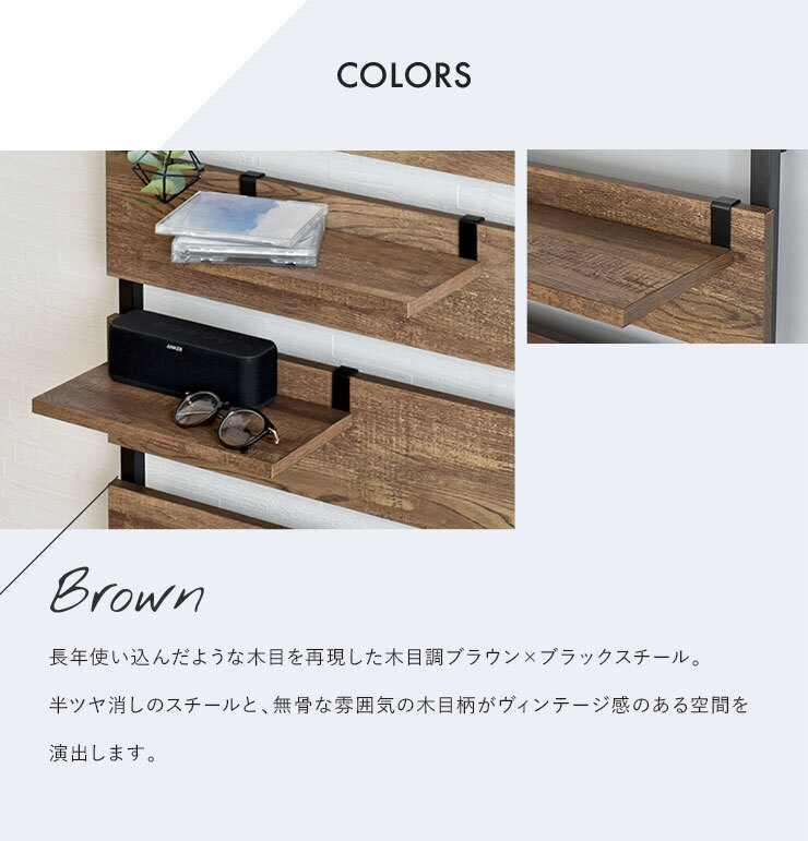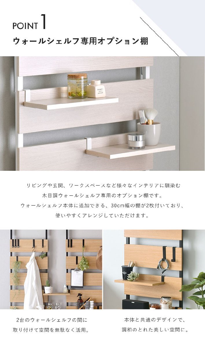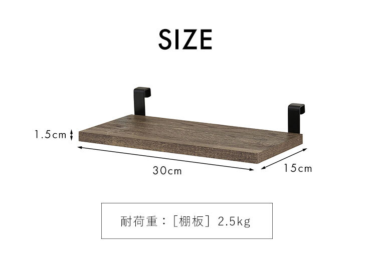 ■梱包重量:1.5kg-[本体]プリント紙繊維化粧板[フック]スチール(粉体塗装) ※商品は追加棚板2枚セットです。(ウォールシェルフ本体は別売り)