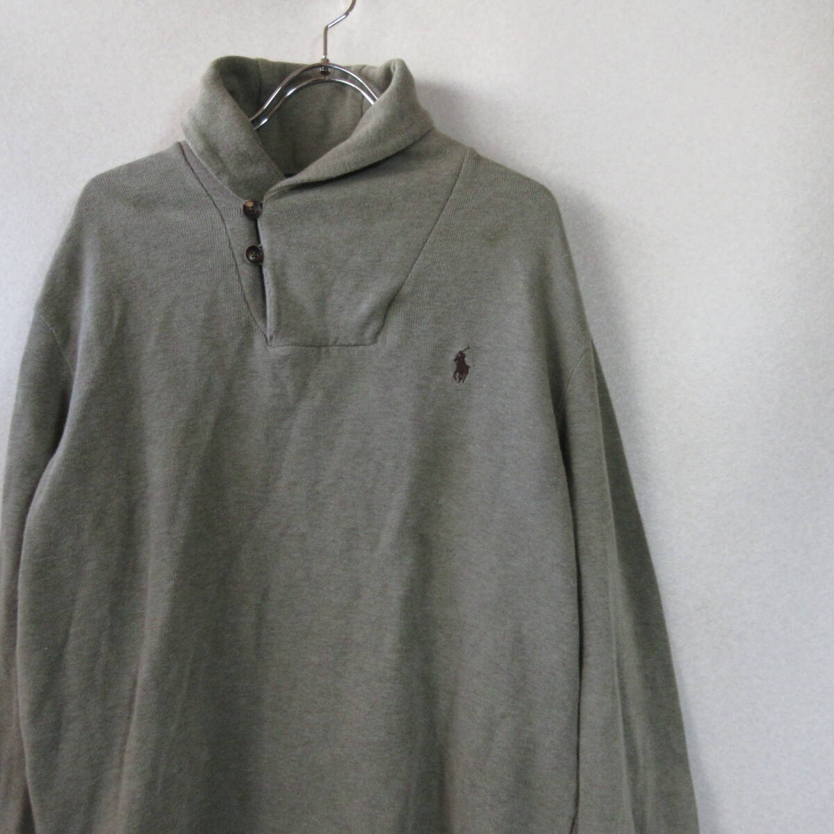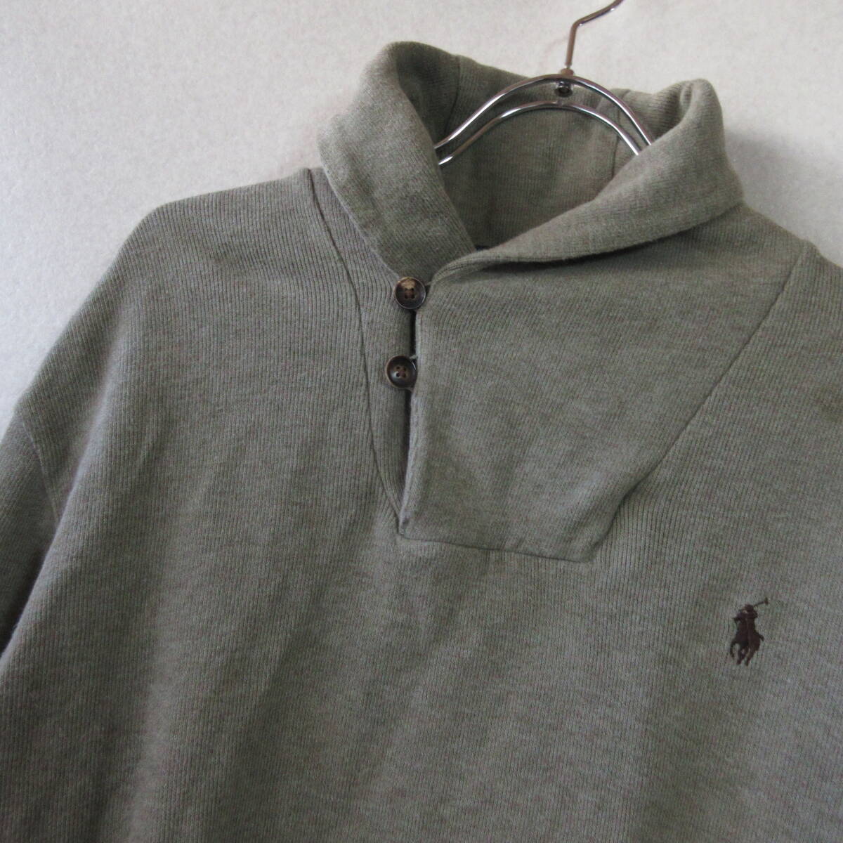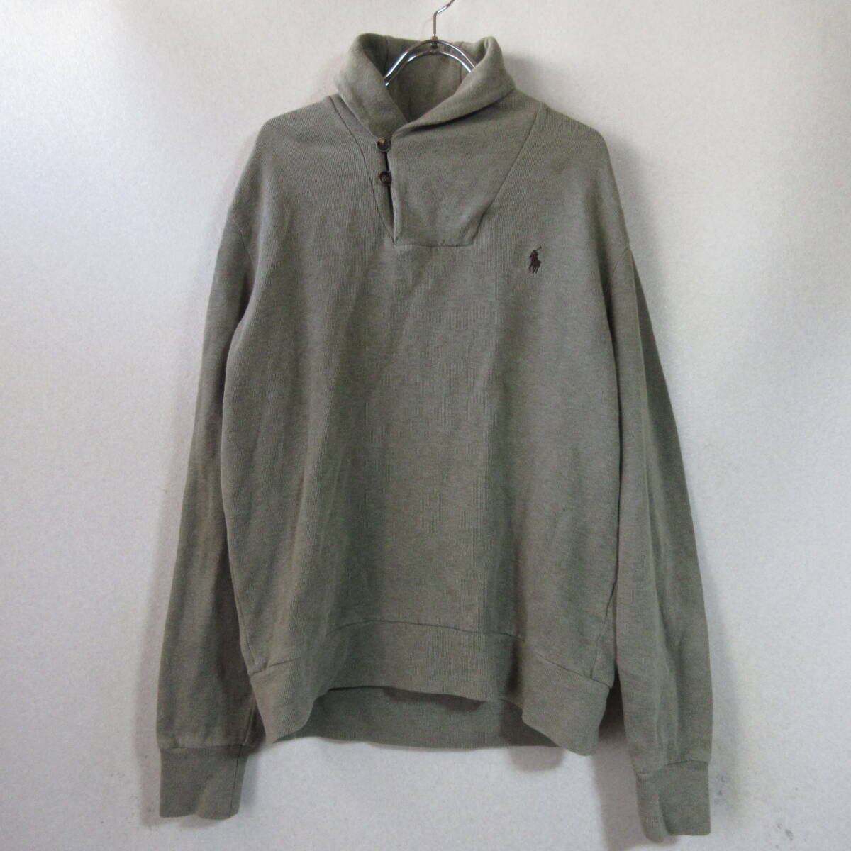 ○POLO RALPH LAUREN ラルフローレン◆スウェットニット トップス 長袖 エルボーパッチ◆メンズ 薄カーキ Mサイズ