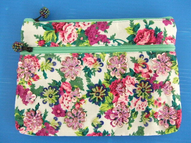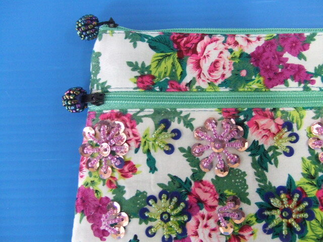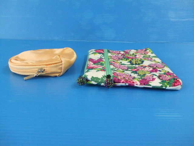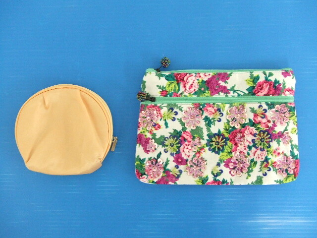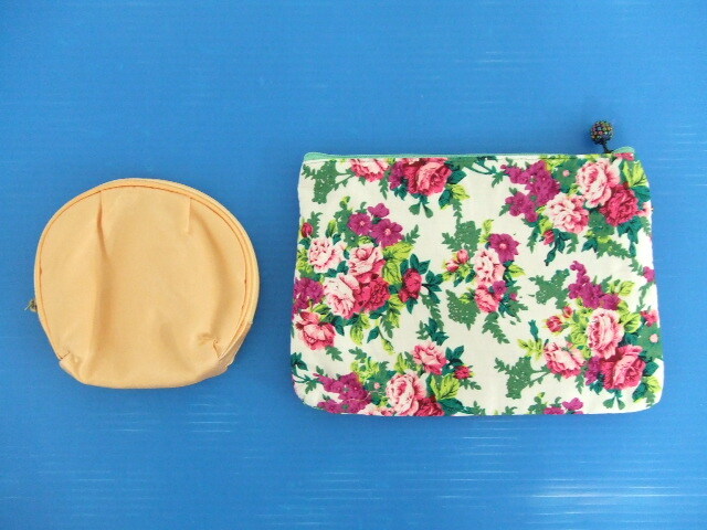 ポーチ2点セット ①黄色系/ラウンド ②白/花柄/スクエア