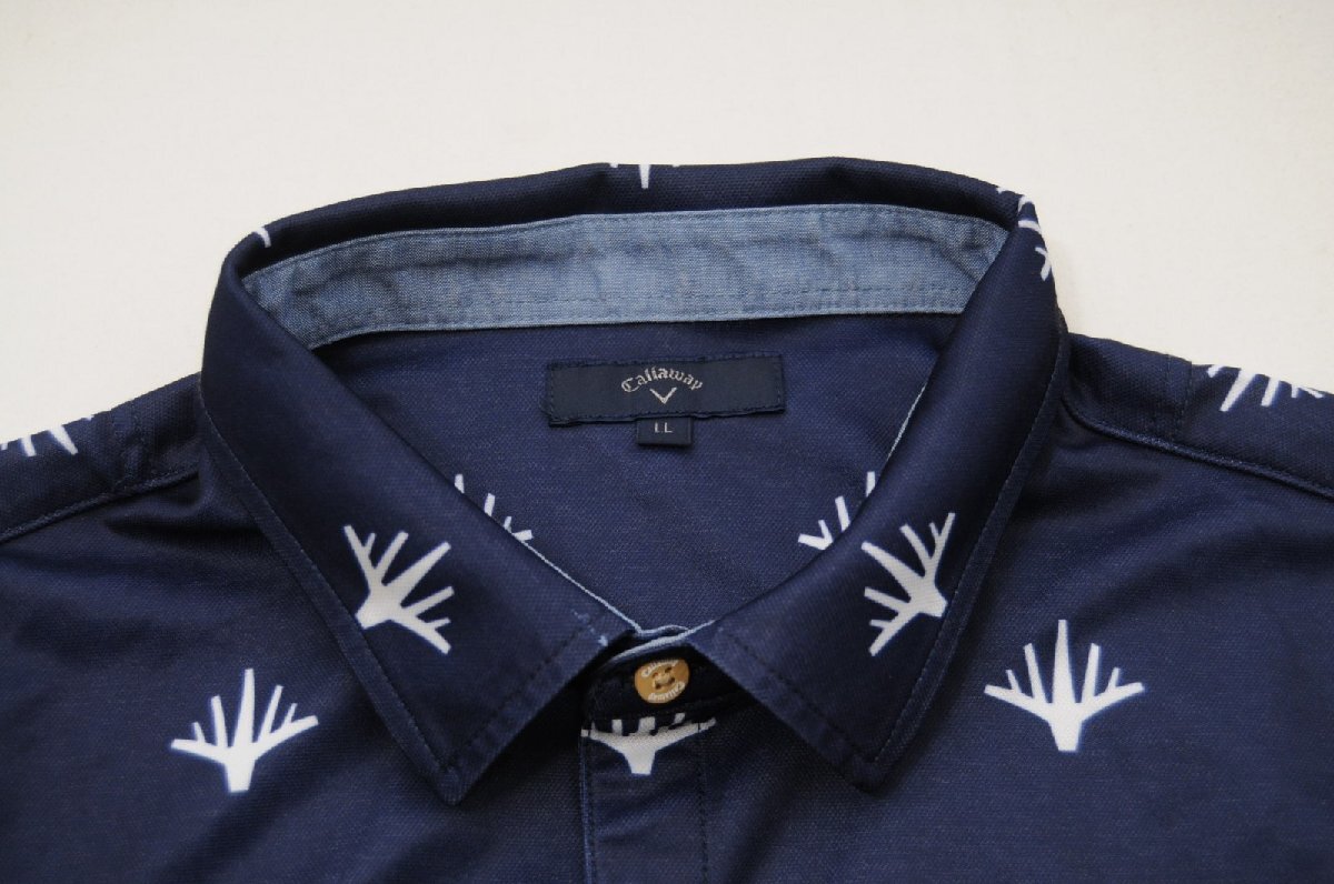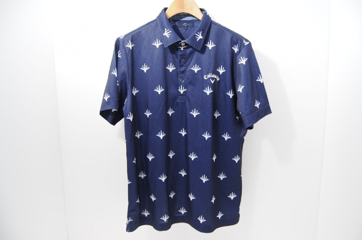 coco 中古【SALE】 キャロウェイ Callaway メンズ 半袖ポロシャツ LL 紺 ネイビー 総柄 レターパックプラス発送可 68092
