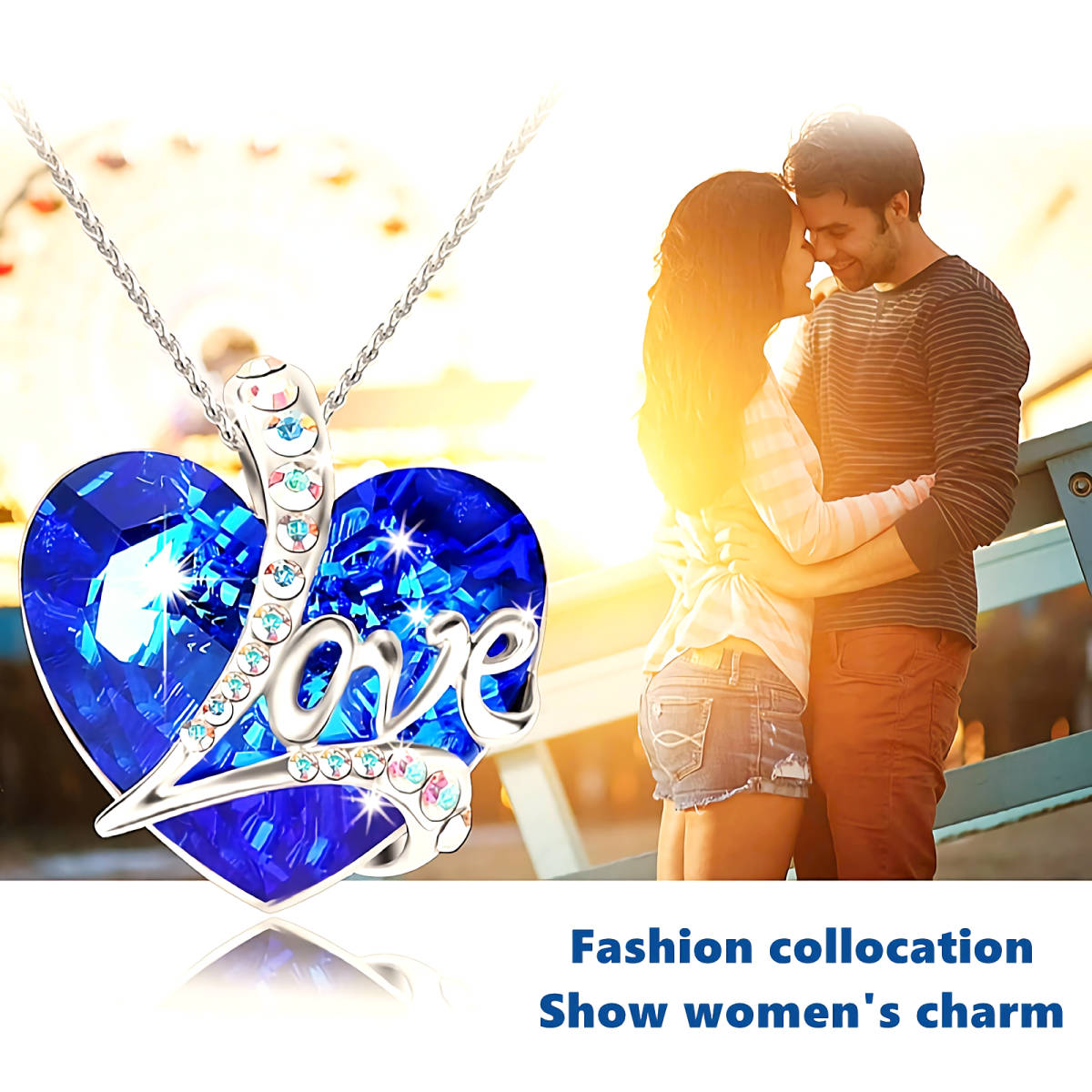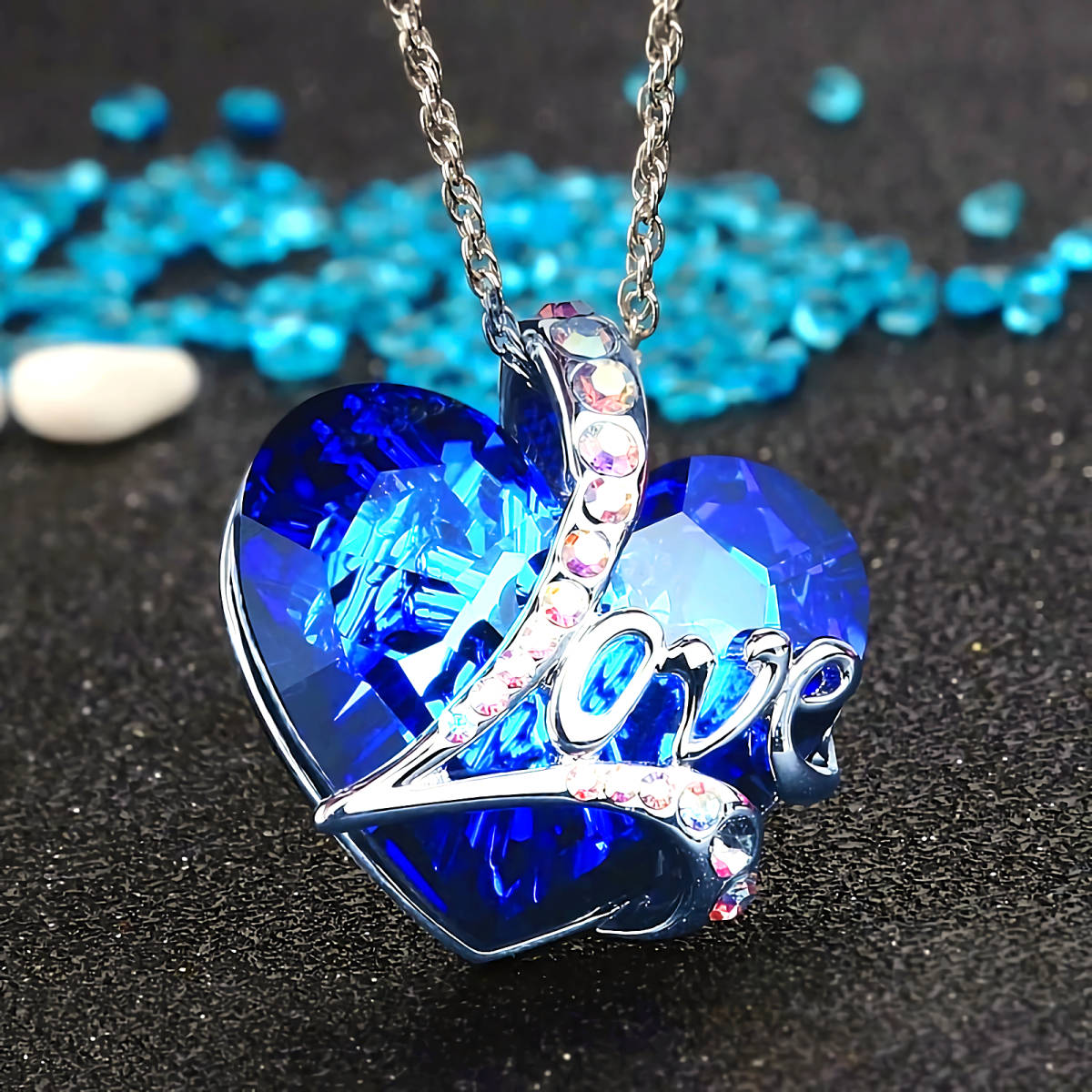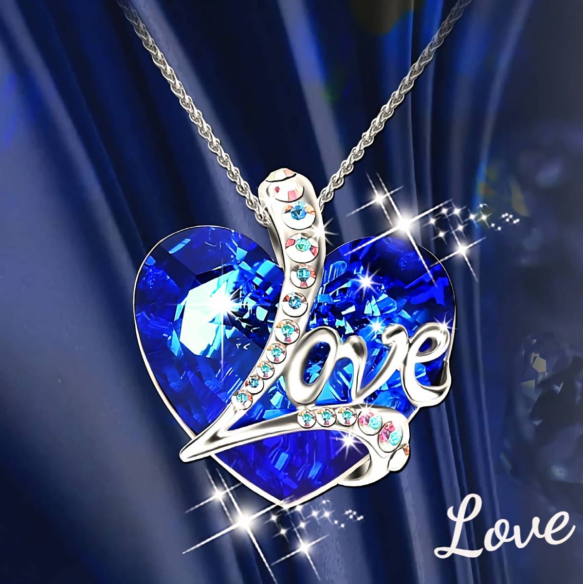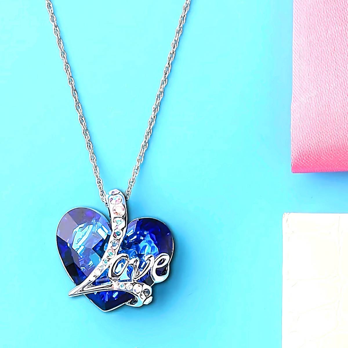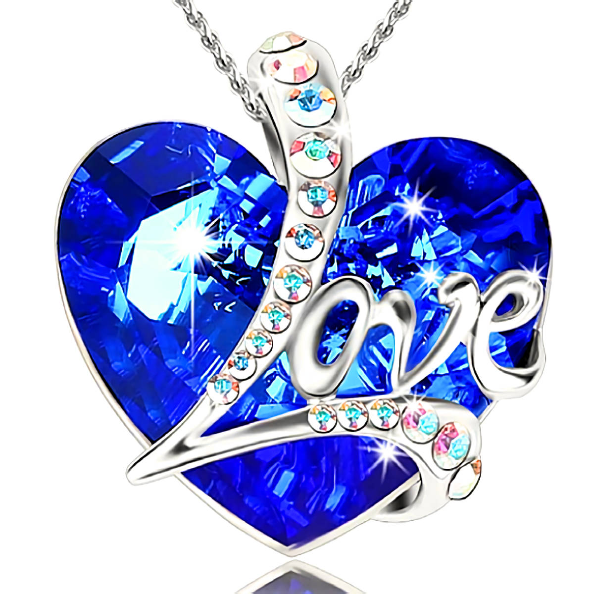 新品★送料無料★Love虹ダイヤモンド蒼玉サファイアハートプラチナ仕上925シルバーネックレス誕生日プレゼント旅行初春ギフト国内発送