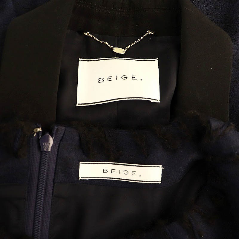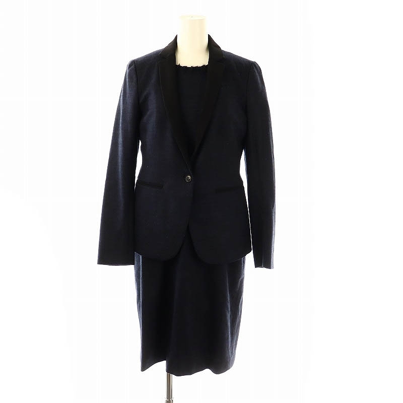 ベイジ BEIGE スーツ セットアップ ウール ワンピース ジャケット 2 ネイビー ブラック /DF ■OS レディース