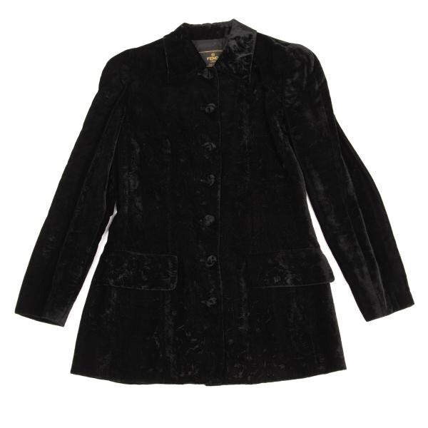 フェンディFENDI 渦巻きパイルデザインくるみボタンジャケット 黒44 |