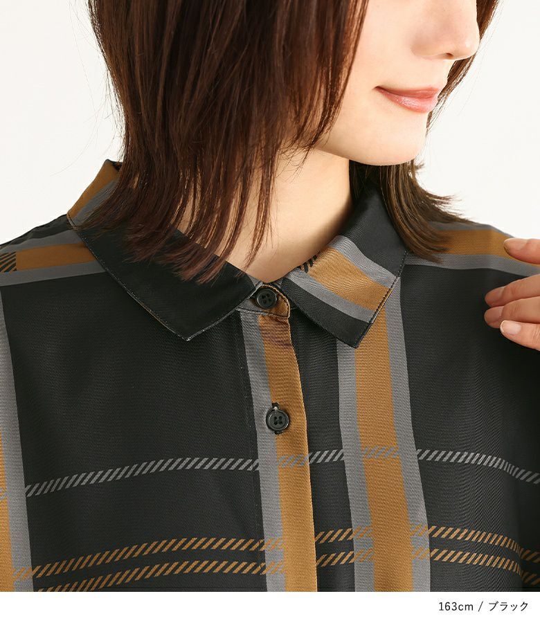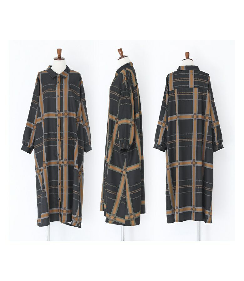 大胆で目を惹く、オリジナルのチェック柄をプリントしたシャツワンピースです。