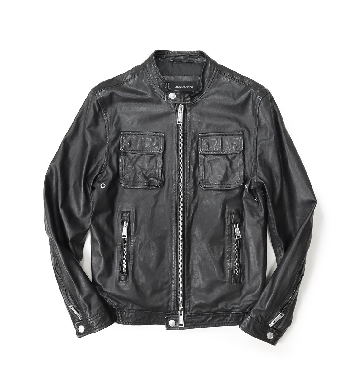 ★美品 DSQUARED2 ◆ レザー シングル ライダースジャケット 黒 サイズ44 牛革 本革 ブルゾン ディースクエアード ◆75/ZX22