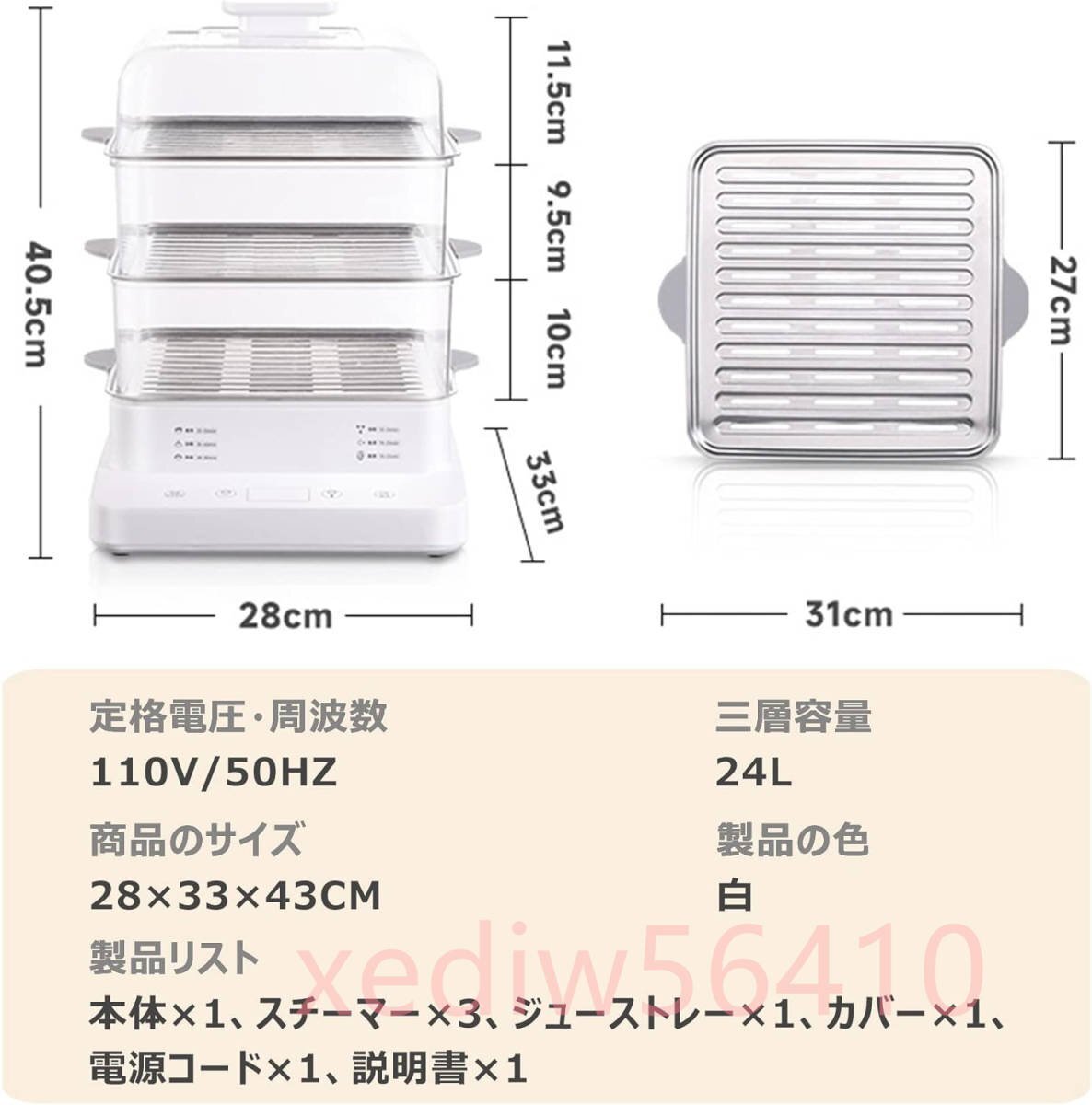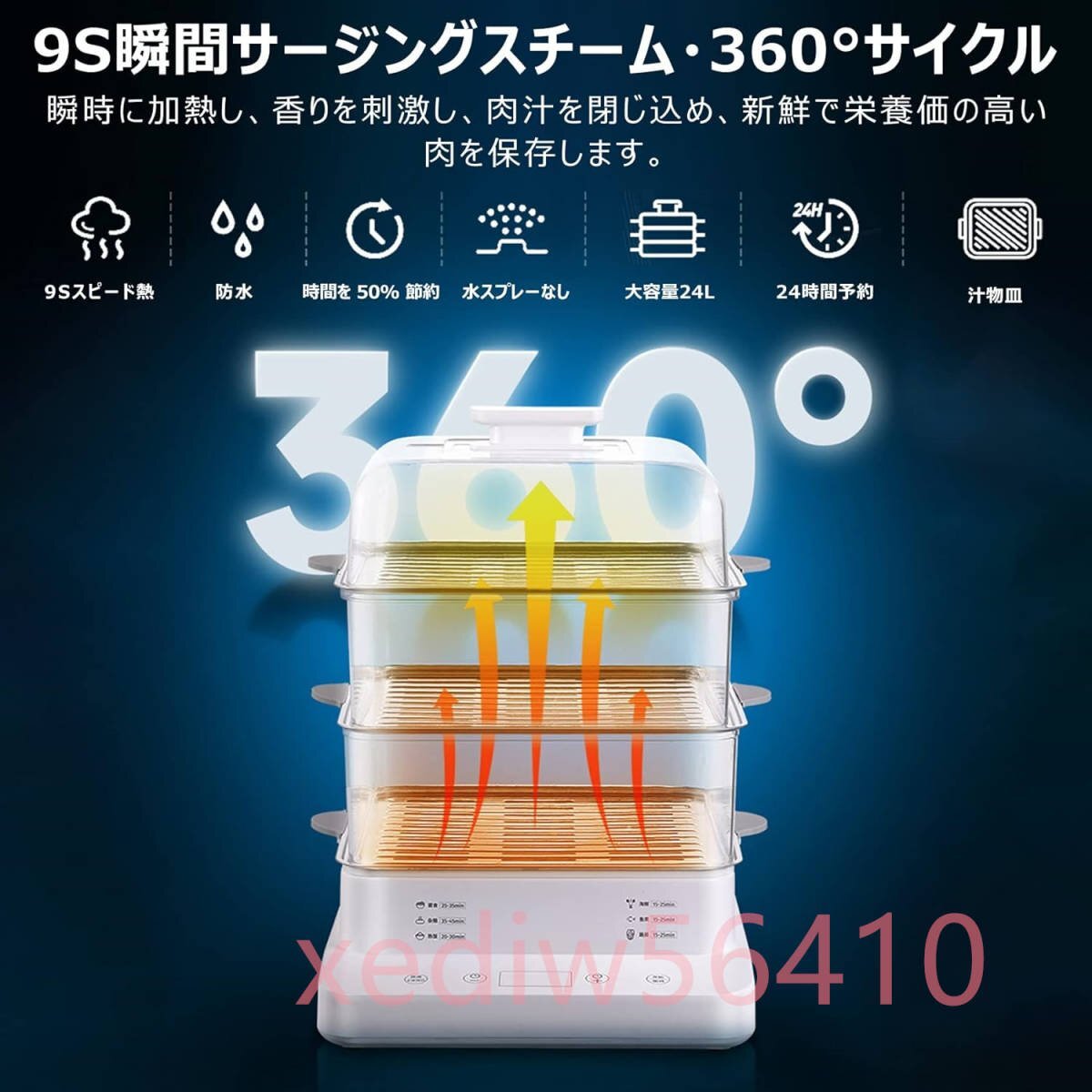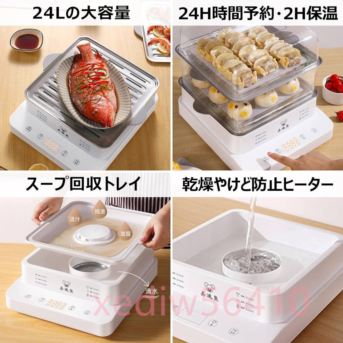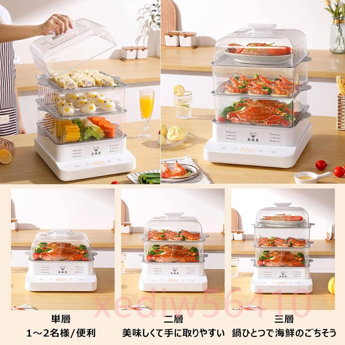 電気蒸し器 3段 蒸し器 電気 スチームクッカー 22L 大容量 多機能 家庭用 二重三層蒸し器 朝食用機械 卵蒸し器 スチーマー 24H予約タイマー