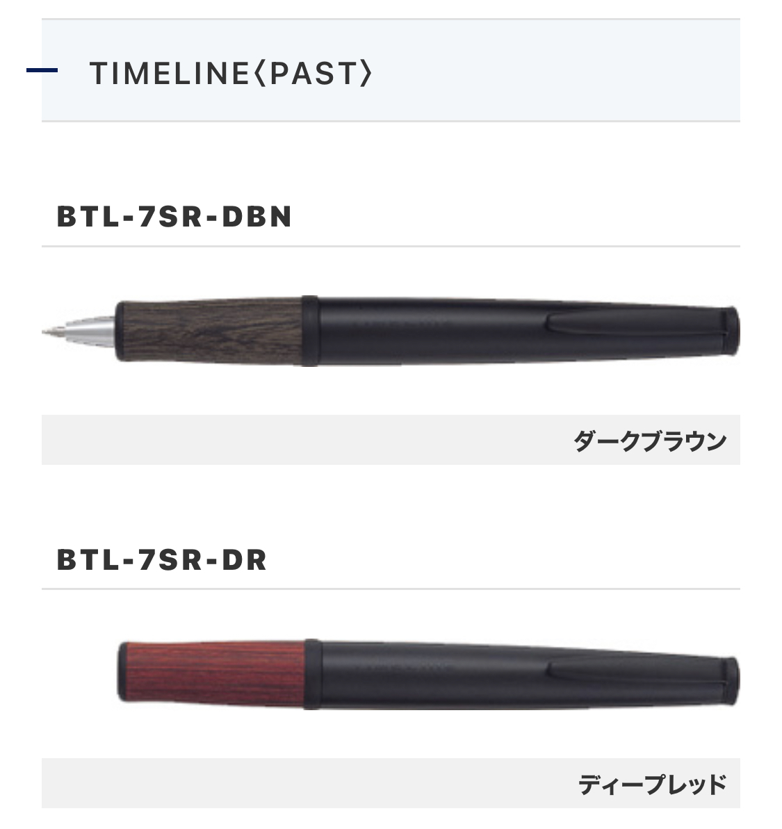 品番 BTL-7SR-DBN ダークブラウン ペンの歴史を書き換えました。 ペンが、生まれ変わりました。 変えたのは、TIMELINE。 道具を超え、時代を超えるペンをつくりたい。 そんな願いがこの一本には込められています。 ペン先が隠れる大胆なデザインと、いままでにないスマートなフォルム。 遊び心をくすぐる、素材やカラーバリエーション。 時間を忘れて書きつづけられる抜群のフィット感と、なめらかな操作性。 このペンが、あなたのイマジネーションを刺激することができたら どんなにうれしいことでしょう。 新機構「ダブルアクション」を採用することで実現した、ペン先を収納する大胆なデザイン。長年の研究で導き出した絶妙な重量バランス。驚くほど手にフィットし、なめらかな書き心地を届けます。
