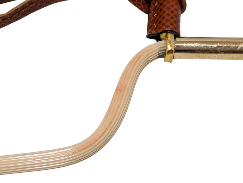 状態・・・全体的に綺麗な状態ですがPVC素材に少々の薄汚れやレザー使用箇所に小傷やスレ箇所があります。内部に薄汚れ箇所があります。タグケースのクリア部分に汚れがあります。ハンガーのプラ部分に色移り箇所があります、ハンガー金具や金具使用箇所にくすみ箇所があります。※ハンガー部分も現状で歪みなどなく、しっかりとしております・・・ハンガーとハンドル部分が一緒(元から接合されております)になっております、ハンドルは見たところ本体と比較して華奢な造りになっております、弊社での長期の荷重テストなどは行っておりませんので耐久性については不明になる為、現状での販売とさせて頂きます。