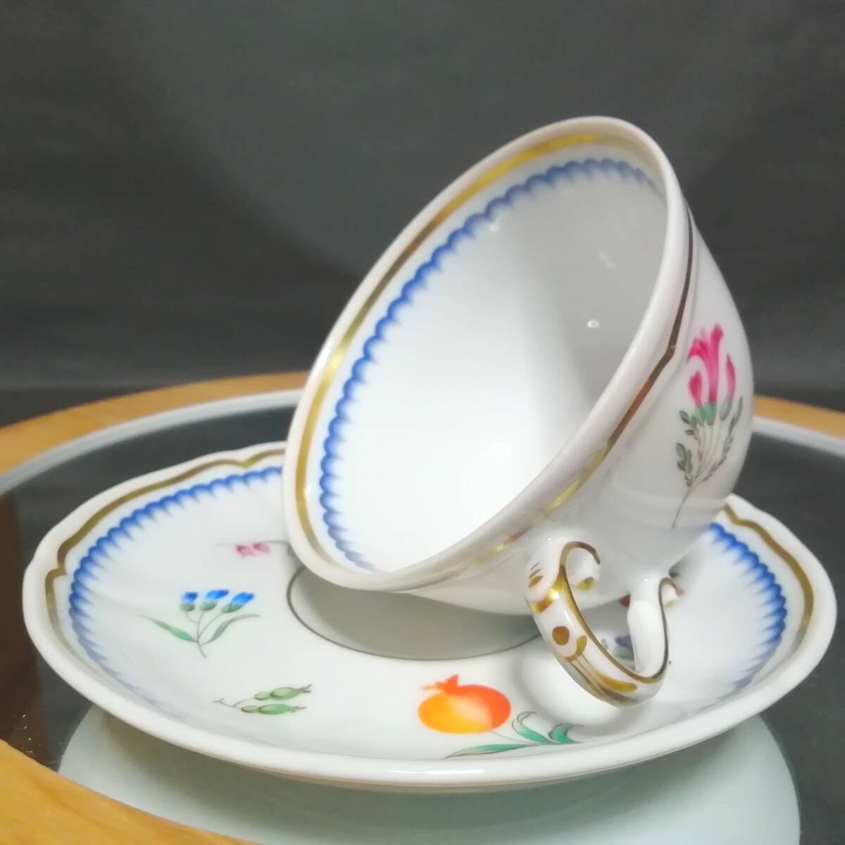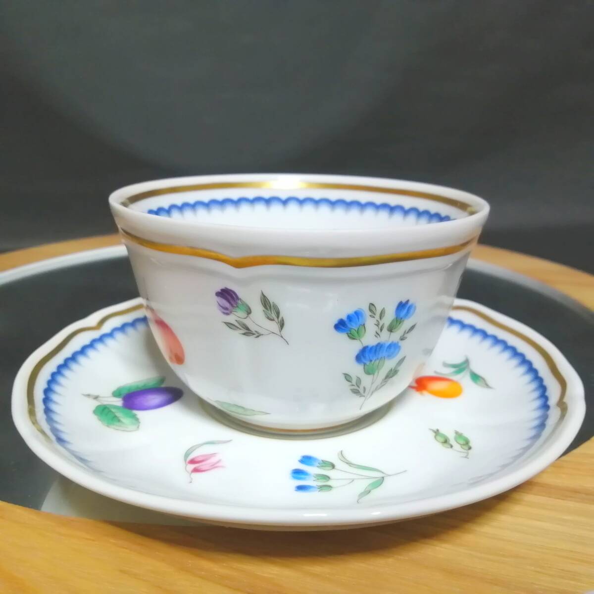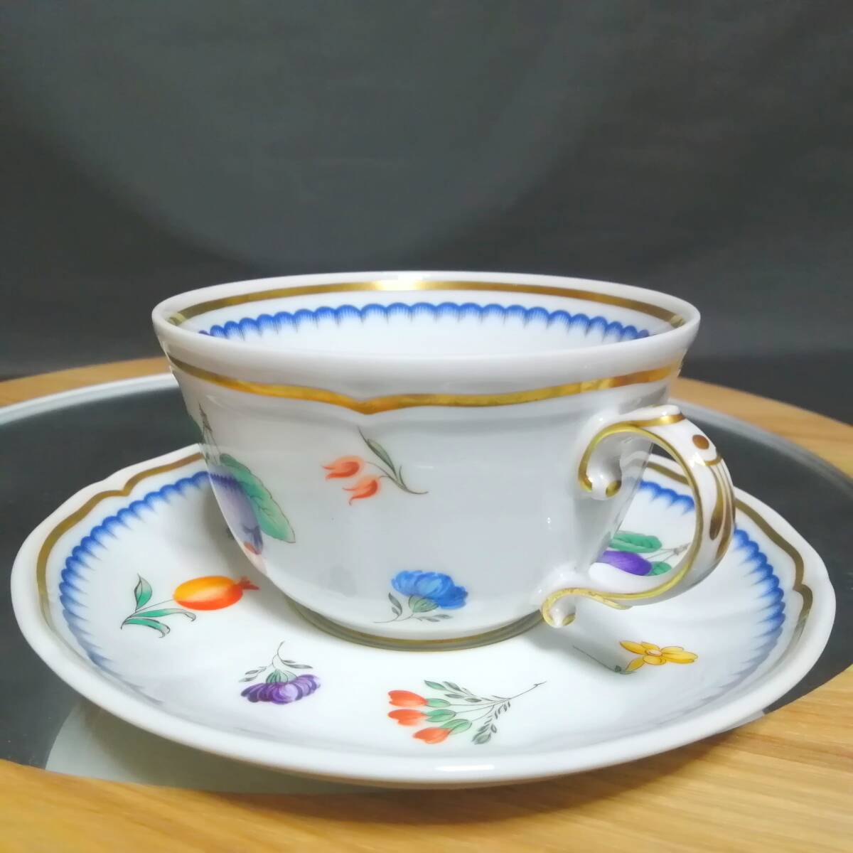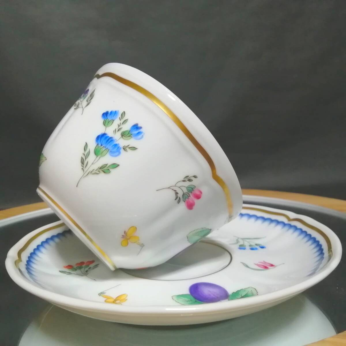 ◆フリマからご覧になっている方へ◆ ヤフオク仕様でレイアウト作成したため、 フリマサイトでは見づらくお騒がせします。 画像1枚目に掲載されているものをお届けします! ※お皿立て等の備品除く 趣味で集めておりますが、保管場所が足りず 大切に使って下さる方の元で第2の人生を歩んでほしいと思い出品します。 ーサイズー(小数点は四捨五入) カップの直径 9CM カップの高さ 6CM ソーサーの直径 15CM ーお品物の現状ー よーくみると僅かながら水垢が見受けられます。 自宅保管品です、 百貨店で陳列された状態の品をお探しの方はお控えください。 化粧箱があるお品物は画像1枚目に載せております。 一部箱は色落ち、多少のシミ、劣化等があることをご了承下さい。 画像1枚目にある化粧箱の状態が気になる方は購入前に質問お待ちしております。 発送方法は発送方法欄をご覧ください。 リサイクル梱包材で梱包の上、割れないようご用意します。 ご入金後に準備開始します、約3日間頂戴しておりますが、 決済後3日以内の到着希望等お急ぎの方はメッセージでお知らせください。 ※まれに発送お休みする期間があります、自己紹介文をご確認ください。 | ||||||