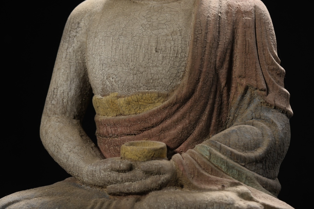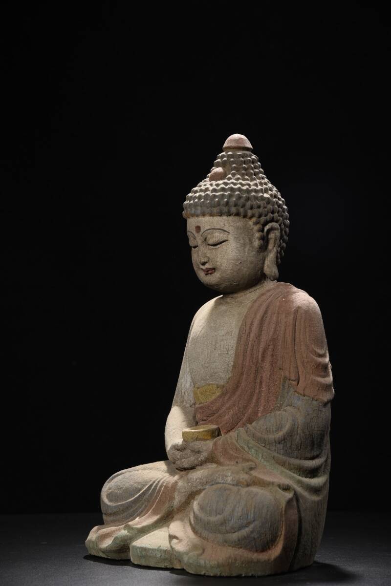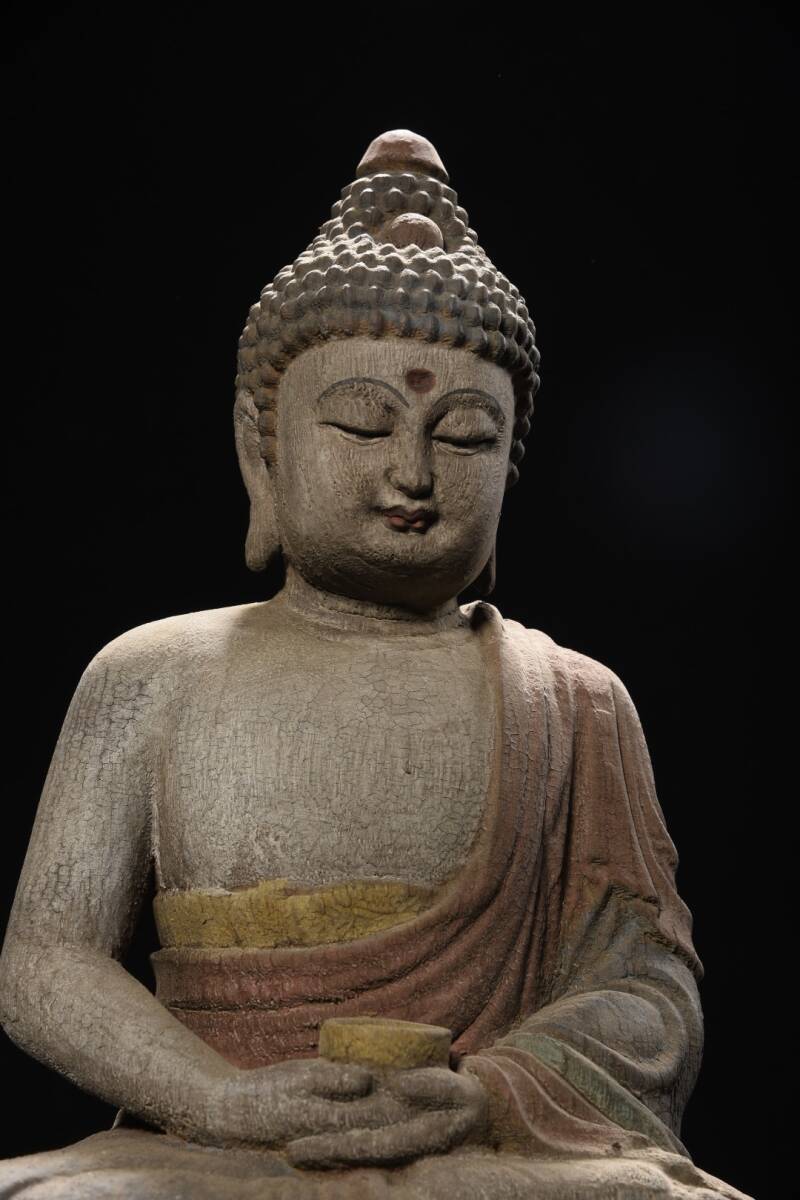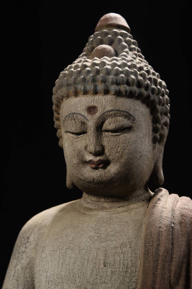 寺院収蔵品 木胎彩絵 描金 仏教文化 仏教開祖 釈迦牟尼造像 供養品 極細工 古賞物 古美味 東洋彫刻 時代物 骨董 中国古美術