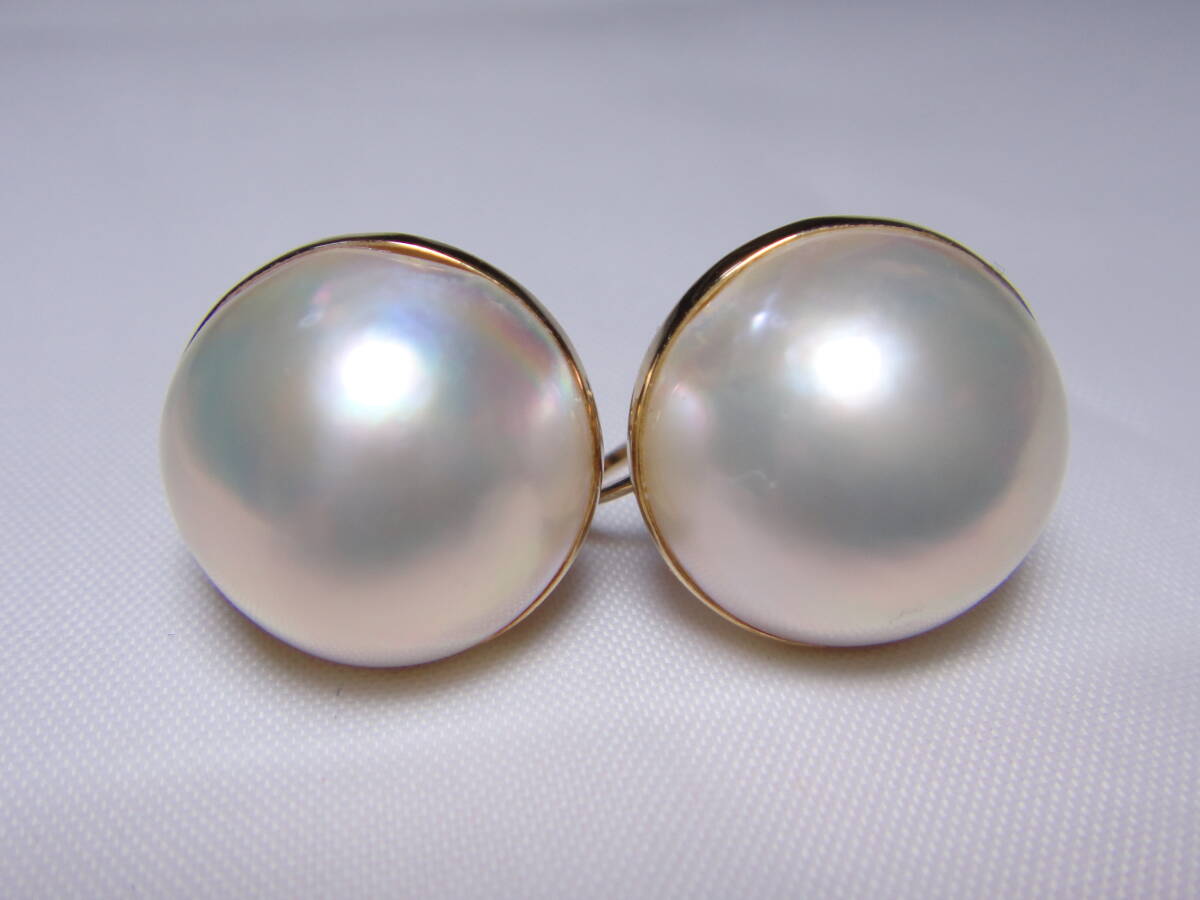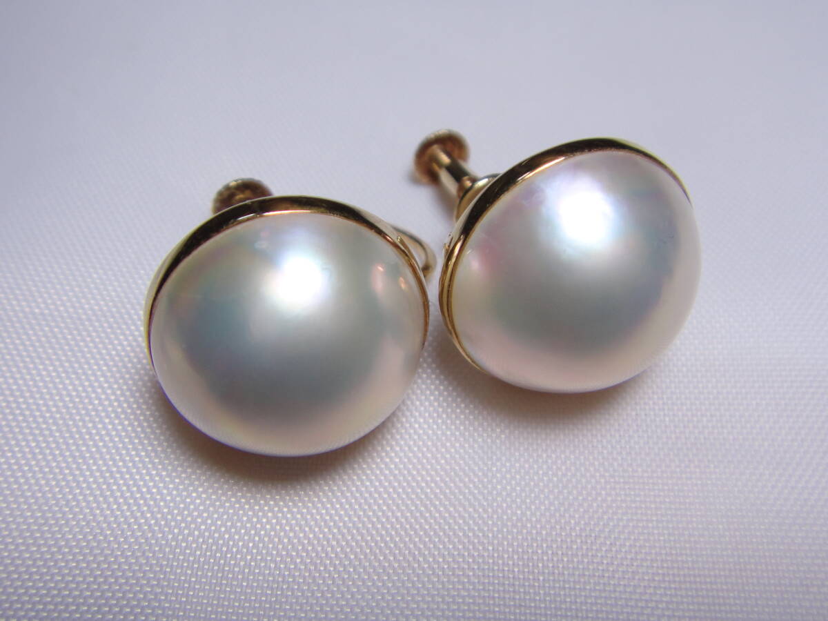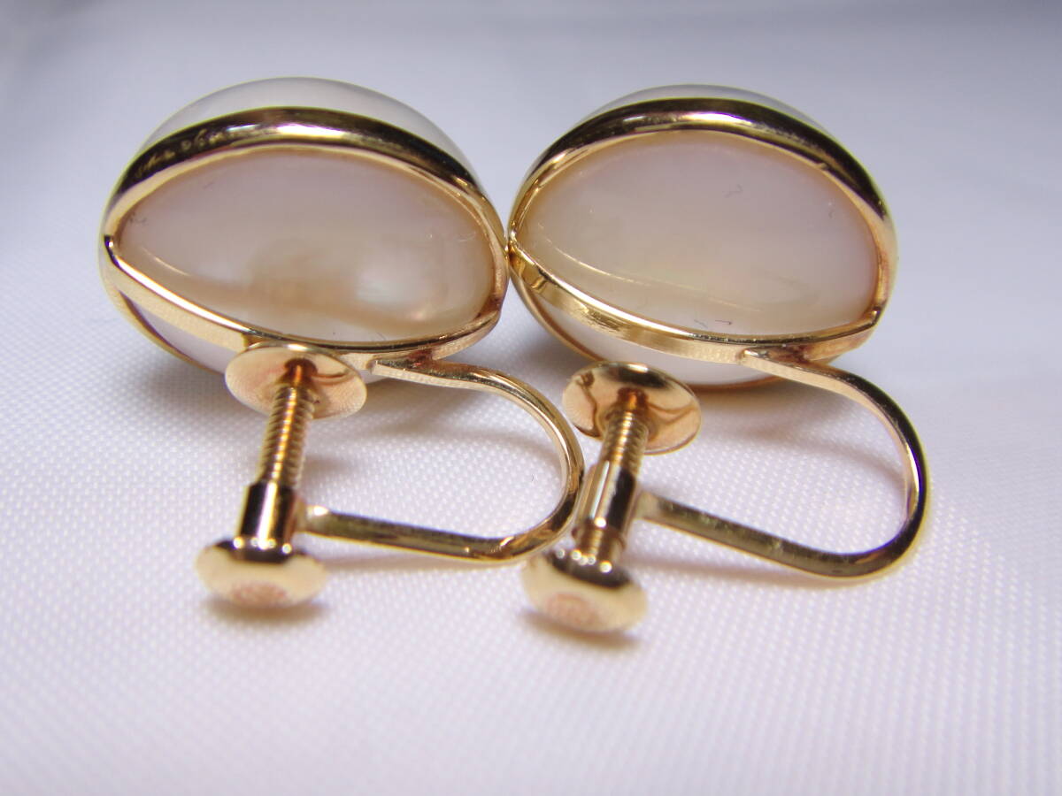 マベパール イヤリング K18刻印 ツヤテリ良 虹色 ヴィンテージ