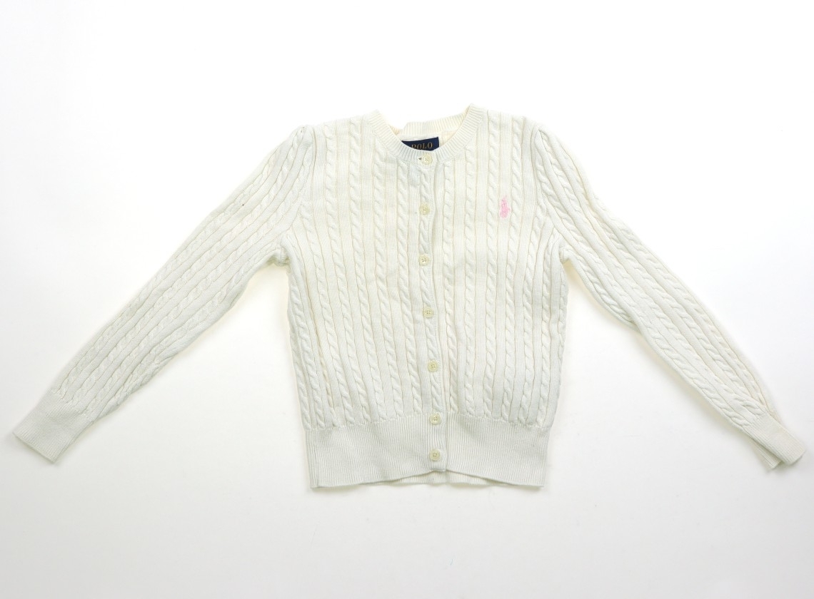 実際のサイズ表記は6。コットンニット。ブランドタグにシールのはがし跡あり。若干縮み、洗いざらし感強めに感じます。