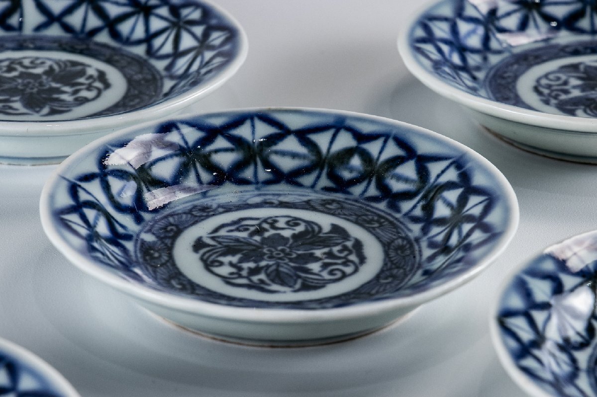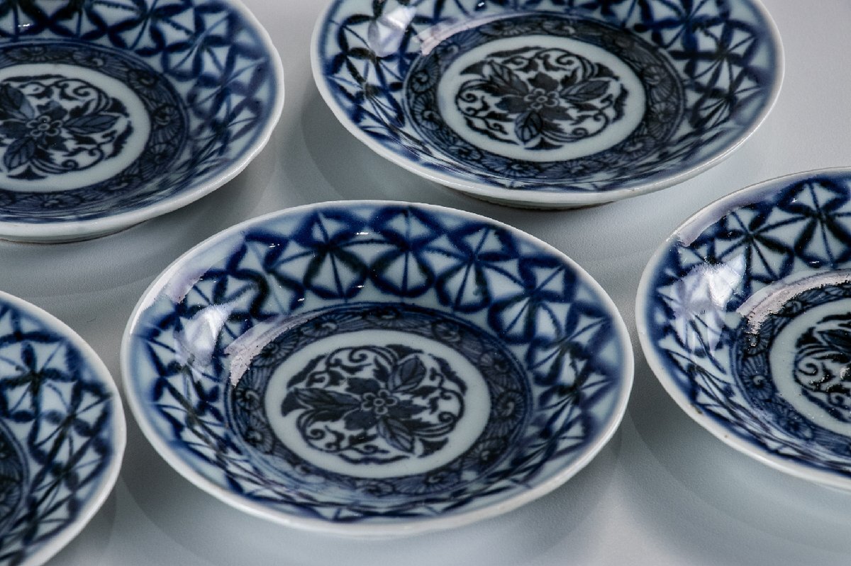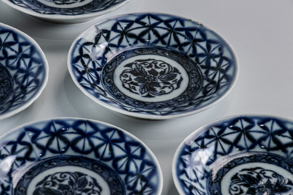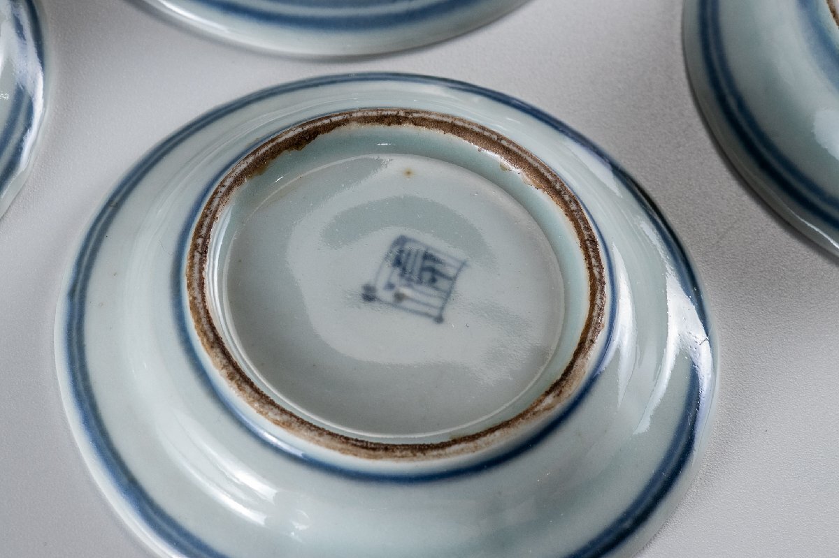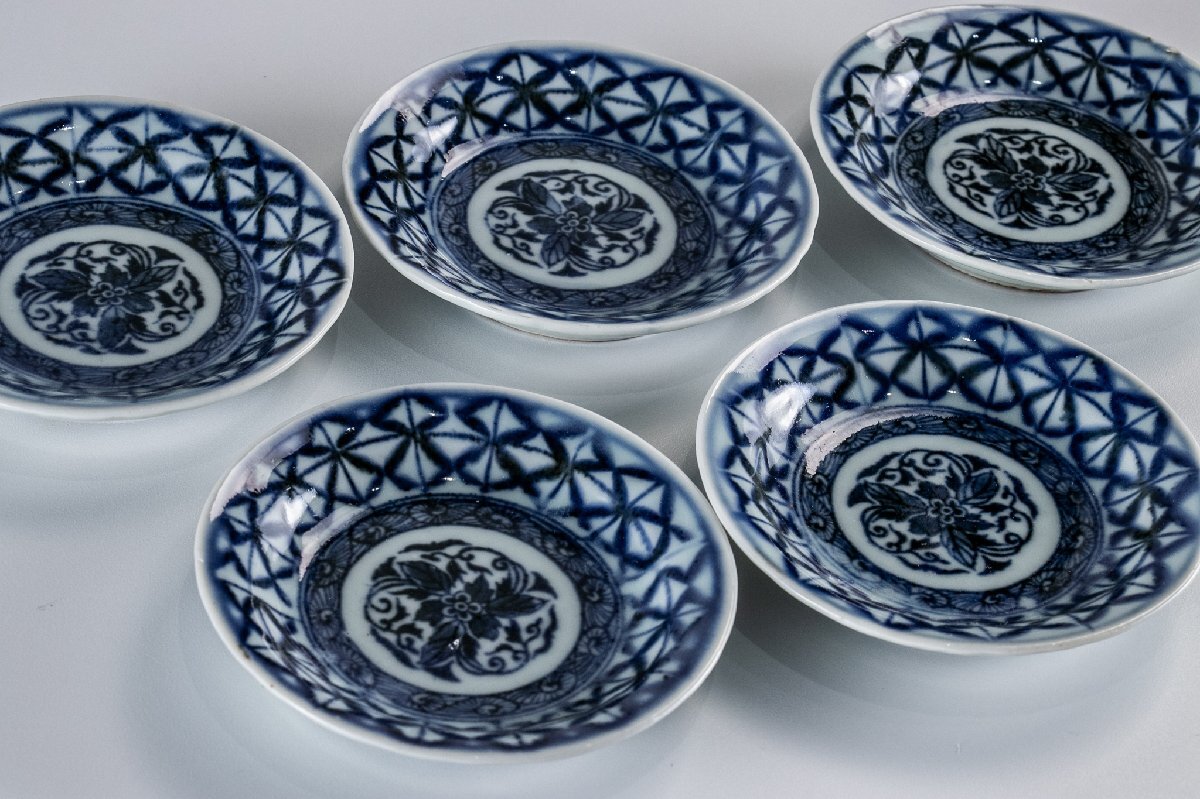 【うつわ】 古伊万里 染付唐華更紗文小皿 5客 江戸中期 E835 バラ売り可能です 古美術 骨董 古玩 唐物 陶芸 日本料理 懐石 料亭