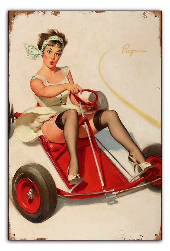 ブリキ看板【Gil Elvgren/ジル・エルブグレン】ピンナップガール/広告雑貨/ヴィンテージ/メタルプレート/レトロ/アンティーク風/サビ風9
