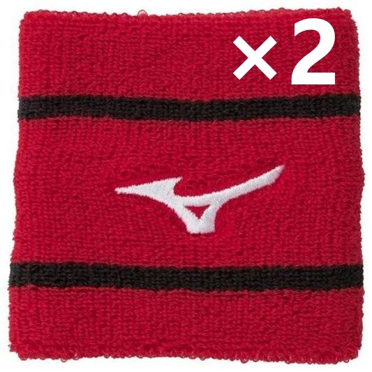 2個セット ミズノ リストバンド 62JYA00262 レッド×ブラック 縦8×横8cm フリーサイズ スポーツ テニス バドミントン