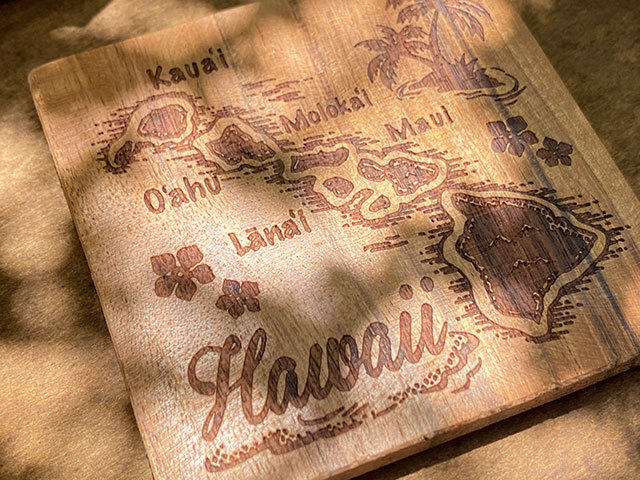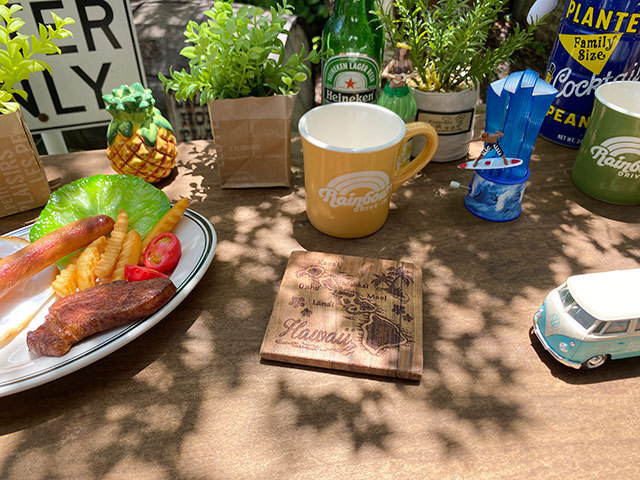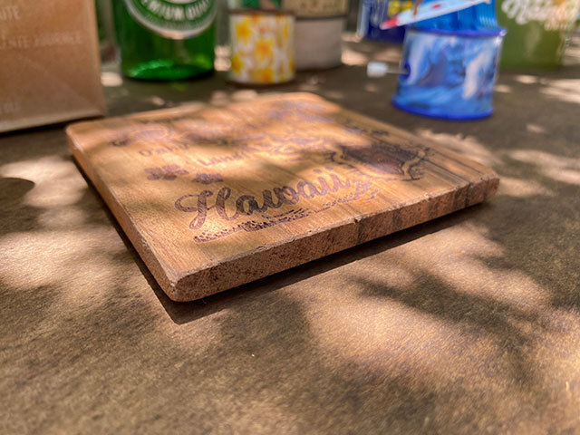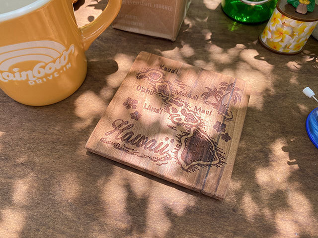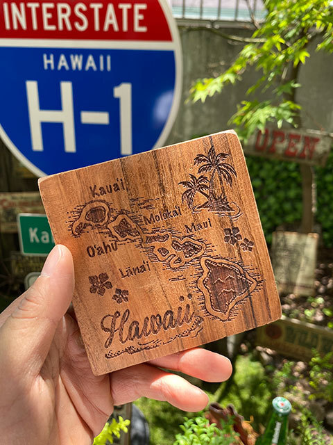 アロハスタジアムで毎週開催されるスワップミートに足を運ぶと出会いそうな・・・・ヴィンテージ風のウッドコースターです。