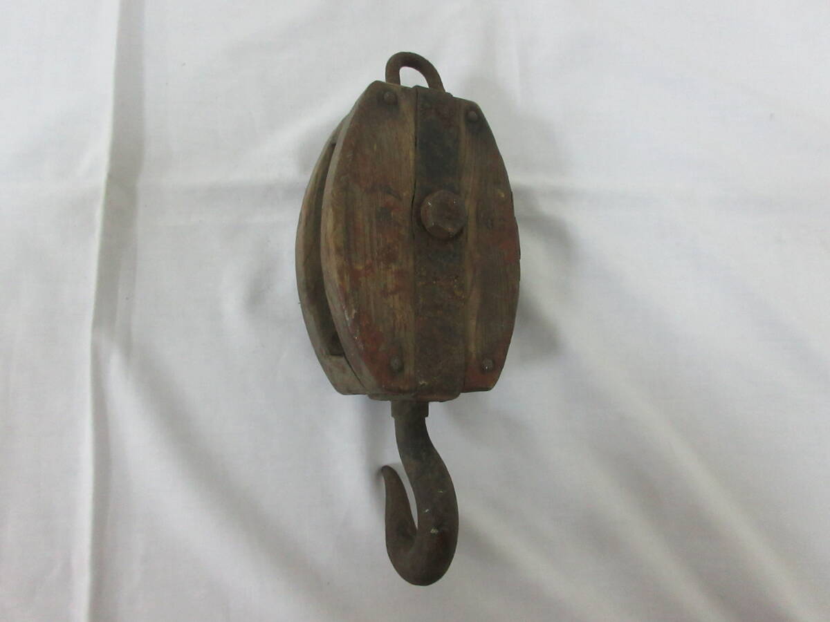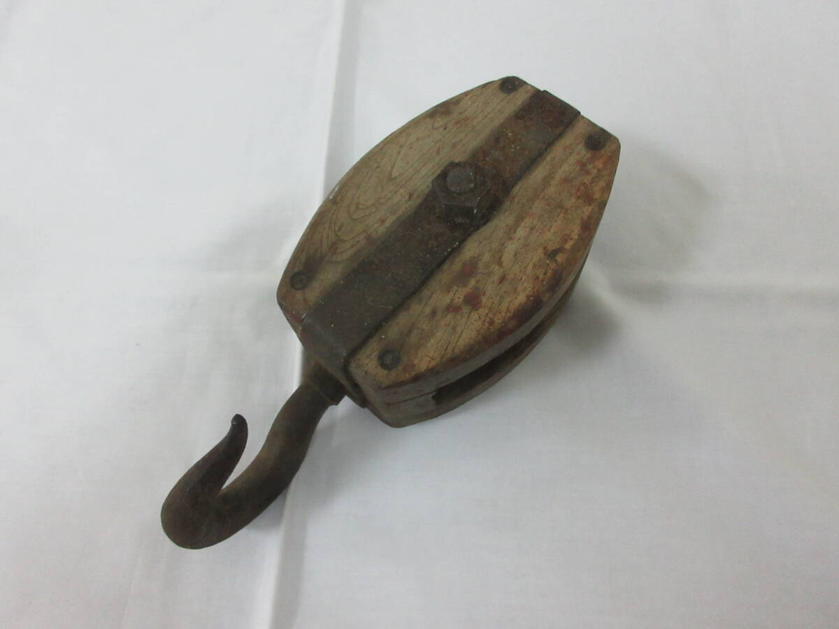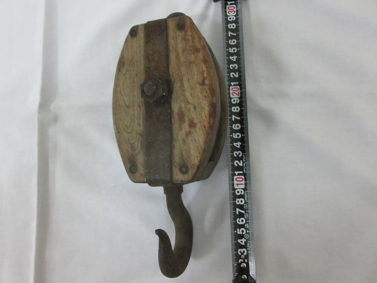| (な-Y-8049) フック付き 滑車 吊り 木製 車径約80mm 中古 | |