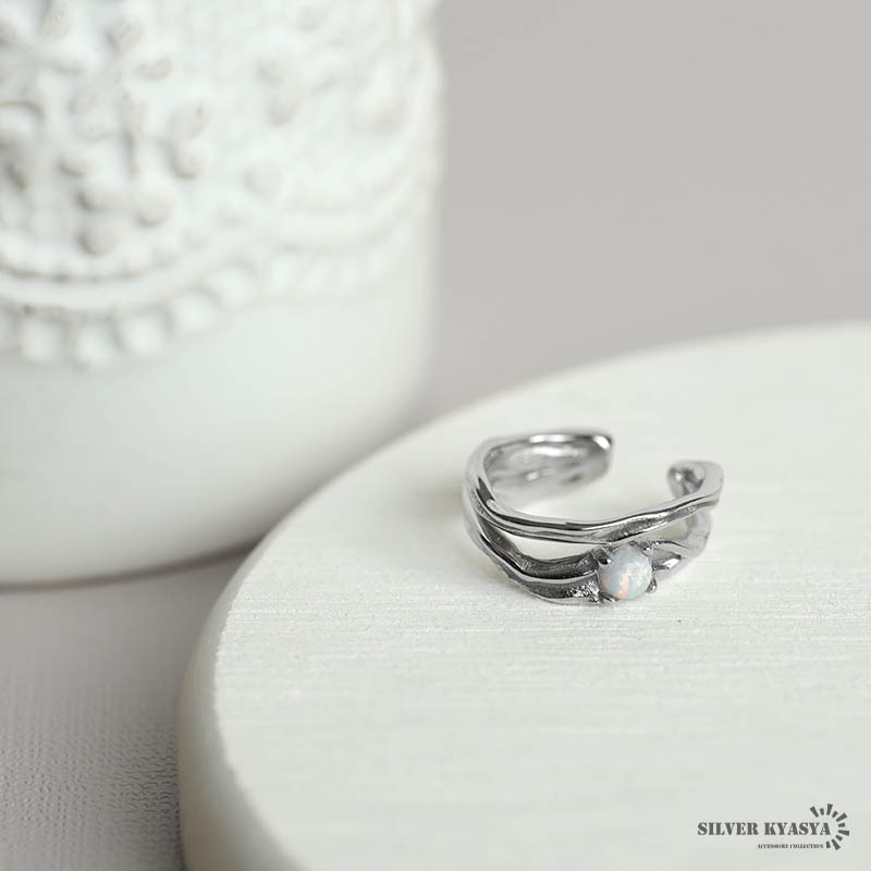 オパール イヤーカフ シルバー925 小ぶり イヤカフ 片耳用 金属アレルギー対応 天然石 シルバーアクセサリー