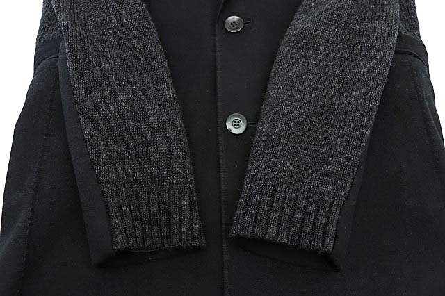 アンダーカバー UNDERCOVER 12AW PSYCHO COLOR期 ダウン ニット 切替 カシミヤ混 ウール チェスター コート UCP9304 2 黒 ブラック ☆AA★250321 メンズ