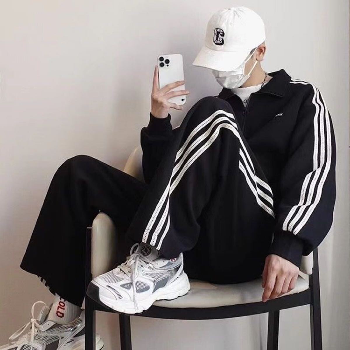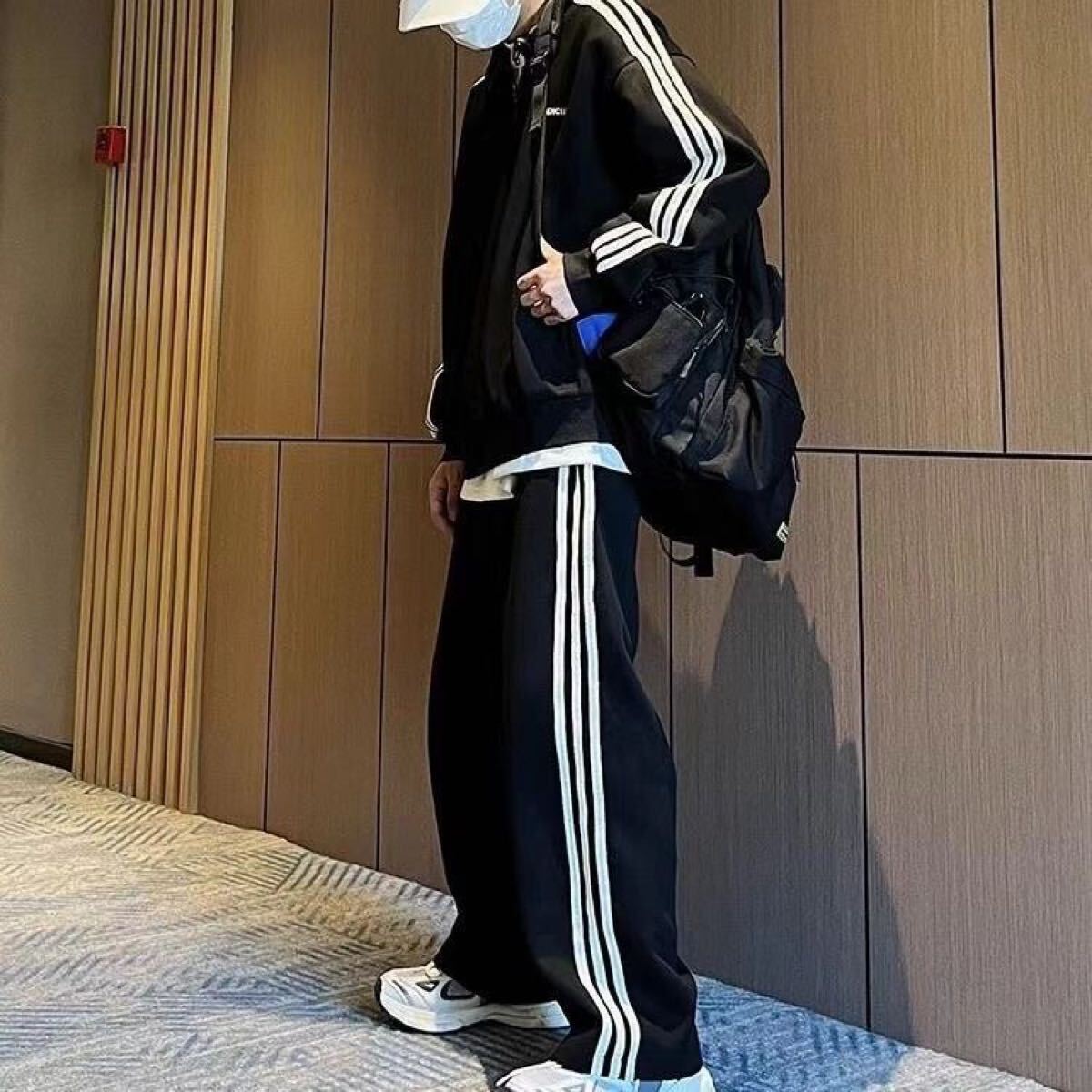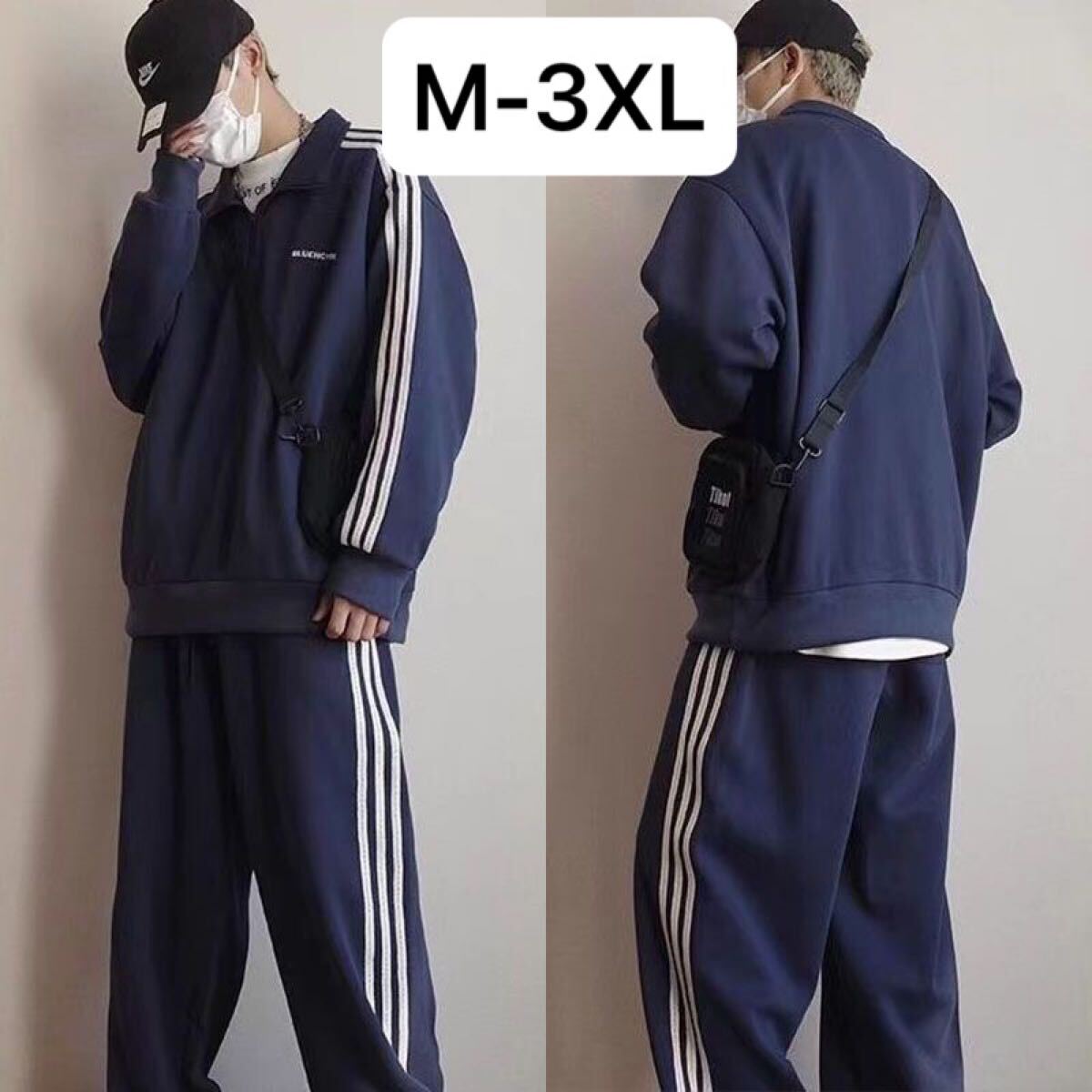 メンズ セットアップ トレーナー+ズボン 2点セット 上下セット スポーツウエア サイドライン 大きいサイズ 長袖 春秋 ゆったり カジュアル JSCS002(2色M-3XL)