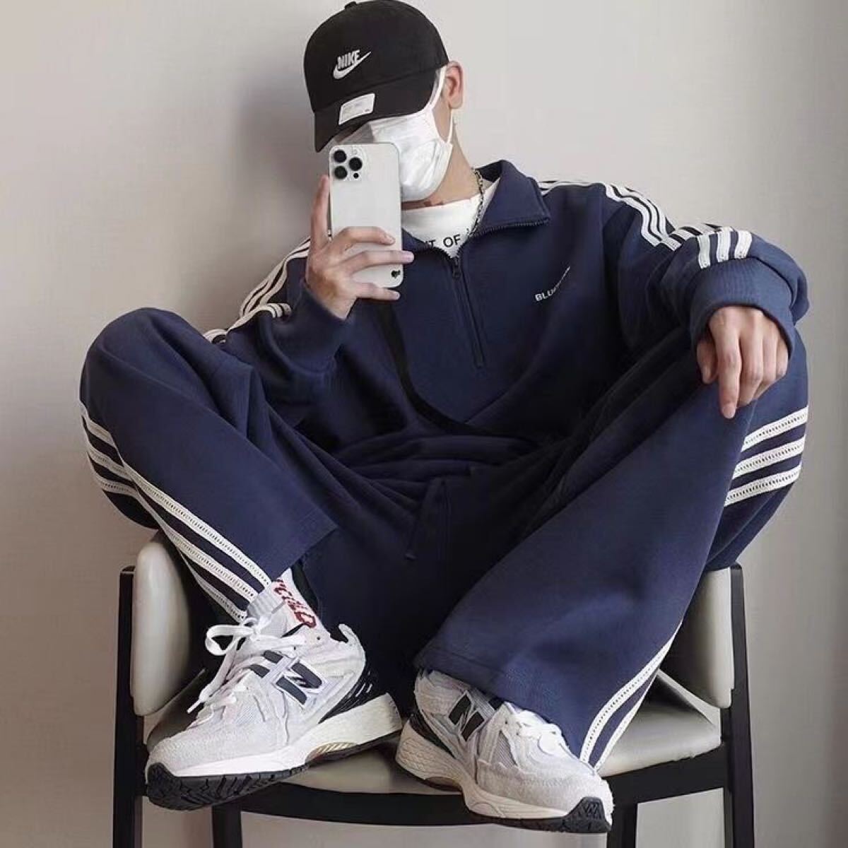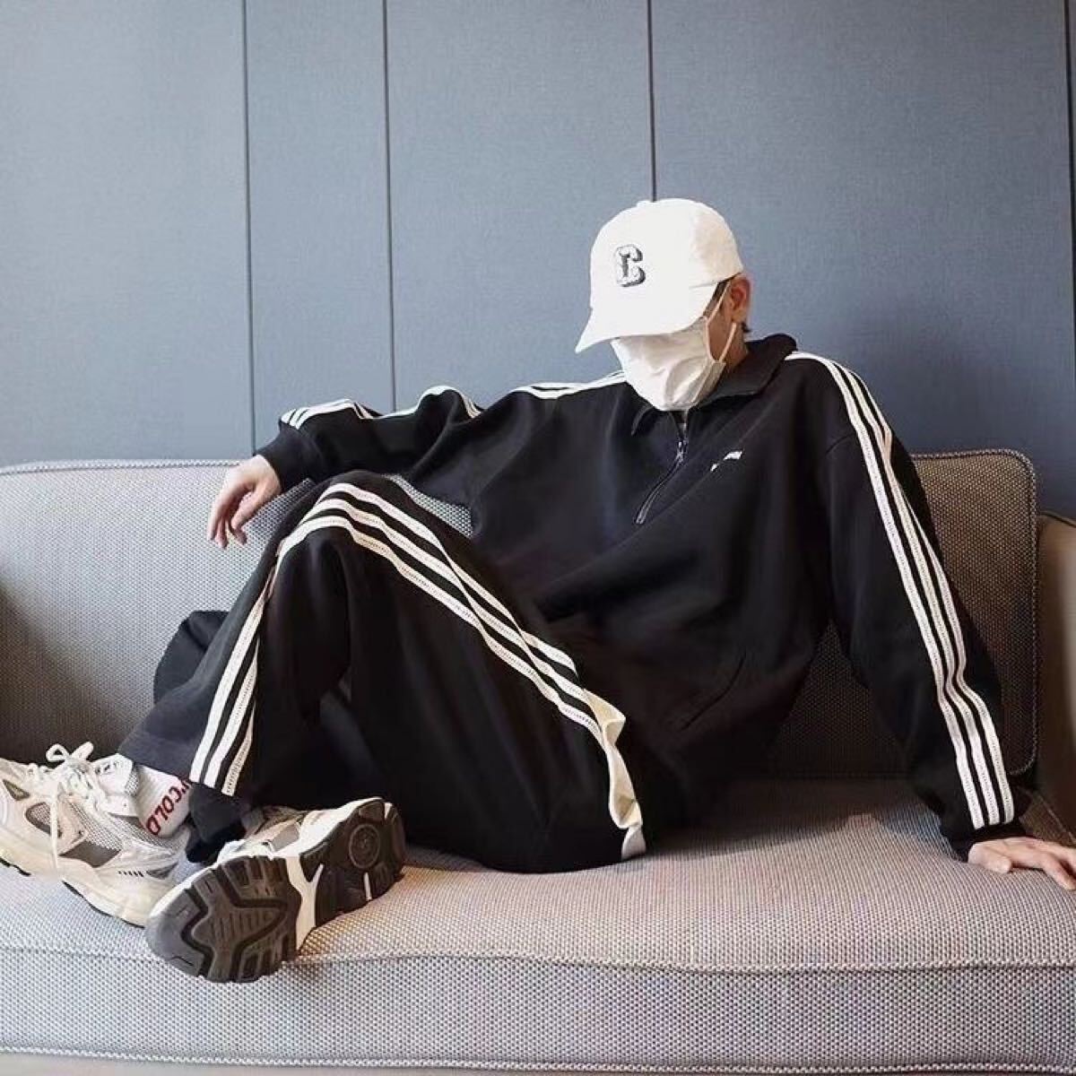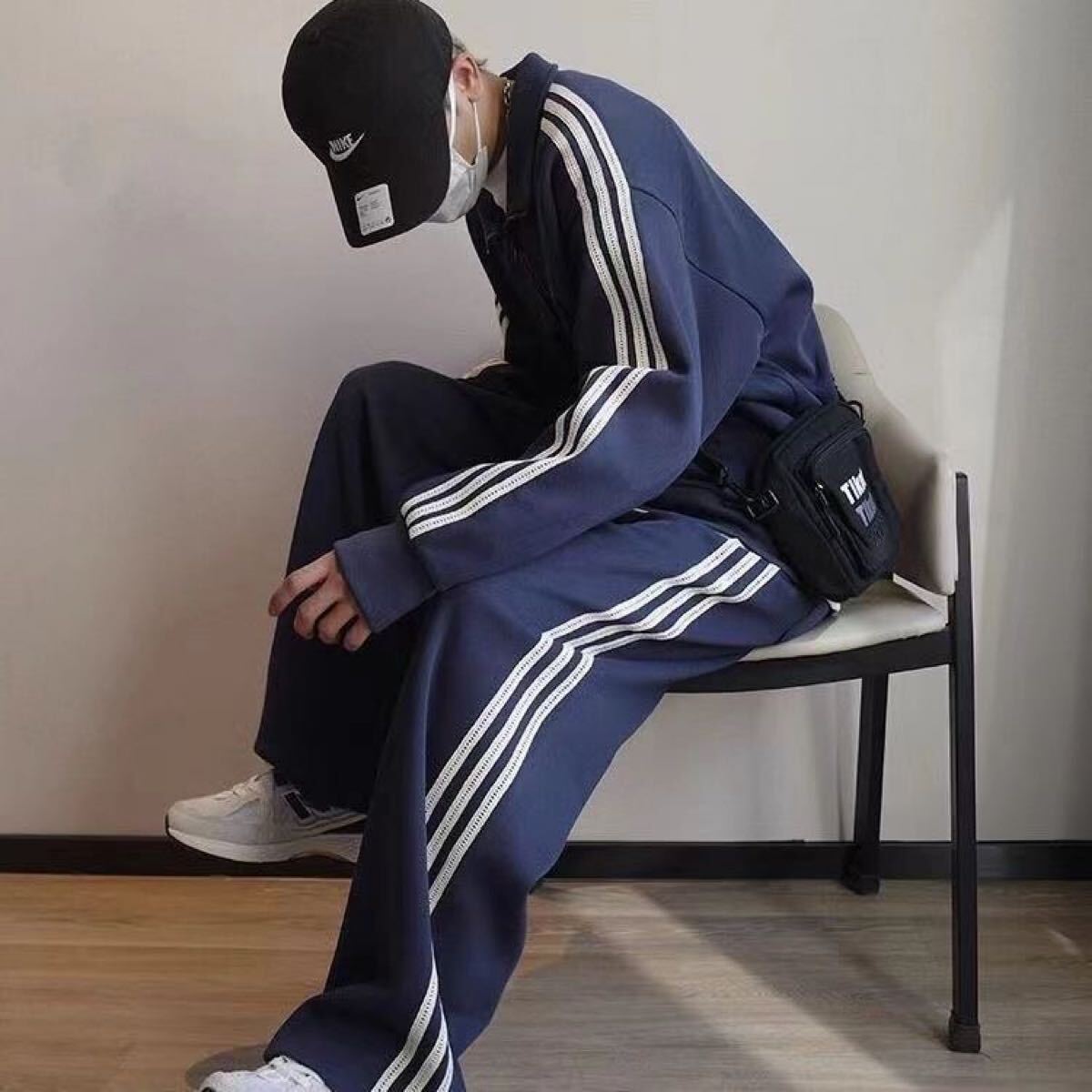 メンズ セットアップ トレーナー+ズボン 2点セット 上下セット スポーツウエア サイドライン 大きいサイズ 長袖 春秋 ゆったり カジュアル JSCS002(2色M-3XL)