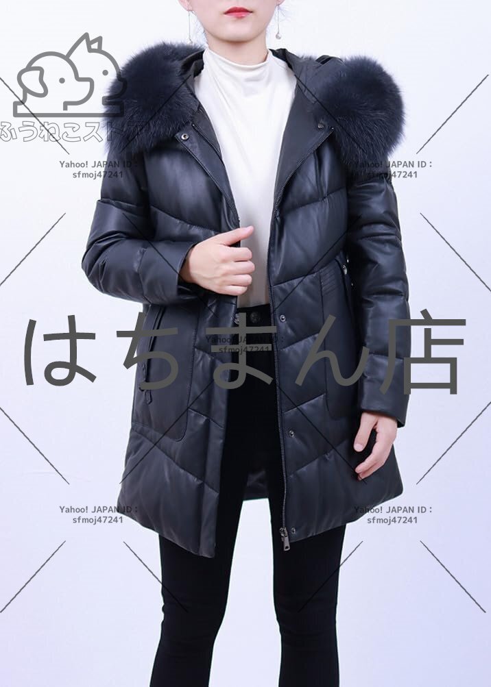 本皮ダウンコート レディース フォックス ファー フード付き 羊革 ロング丈 ダウンジャケット 冬服 防寒 M-4XL