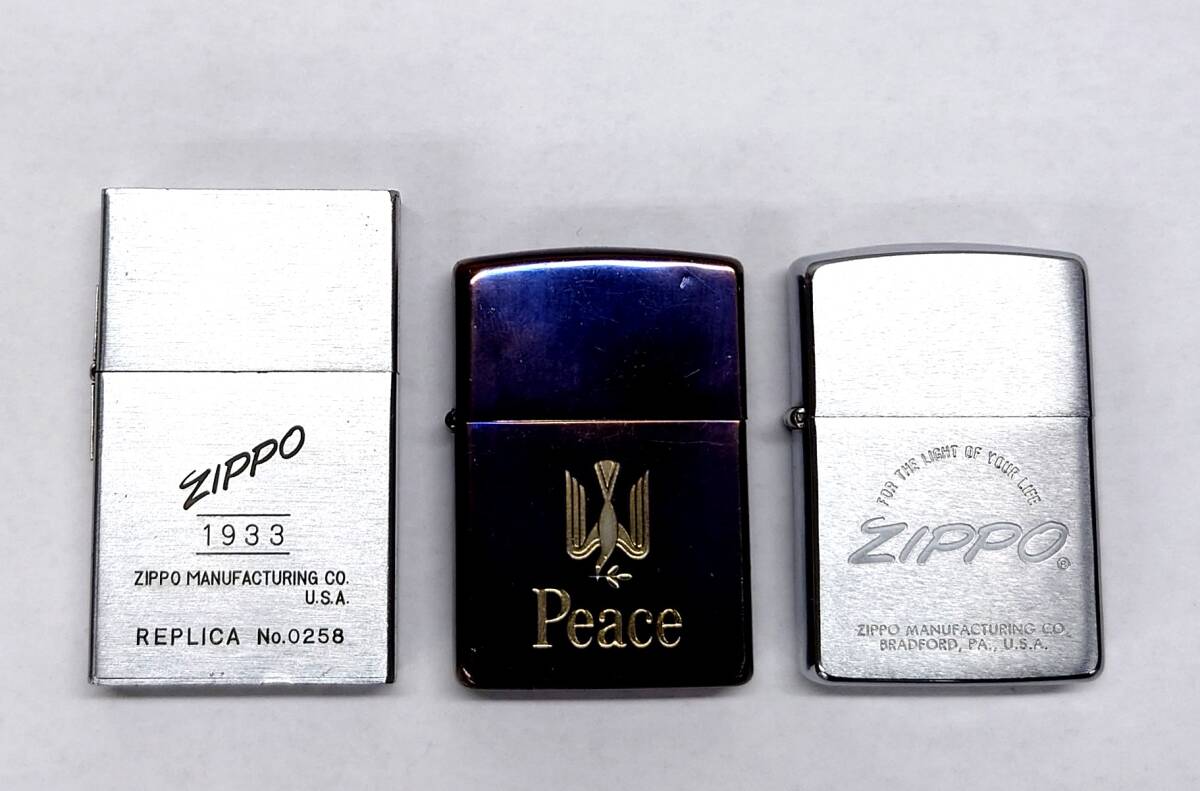 Zippo ジッポー オイル ライター BRADFORD.PA. 三点 1933 レプリカ ファーストリリース + Peace ピース +イタリックロゴ  1989年製 即決
