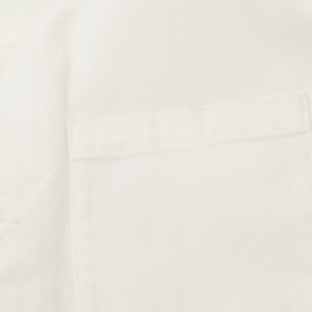 ほのかな織り感があるやや厚手のツイルコットンを用いたカバーオールジャケットです。ホワイト単色カラーで仕上げることで、爽やかかつ華やかな雰囲気に仕上がっています。適度なゆとりを持たせたシルエットが、自然なこなれ感を演出しています。