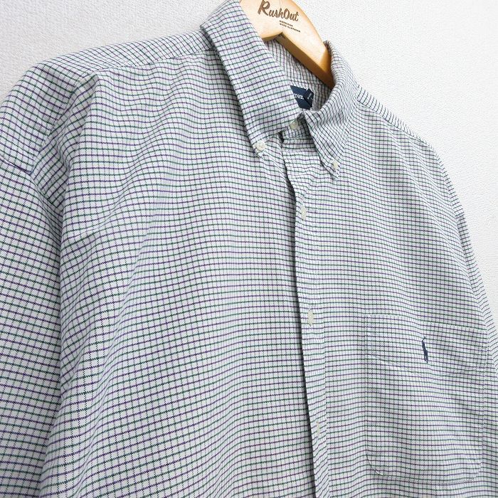 【商品名】 XL★古着 ラルフローレン 長袖 ブランド シャツ メンズ 90年代 90s BIG SHIRT ワンポイントロゴ 大きいサイズ ロング丈 コットン ボタンダウン 白他 チェック【spe】
