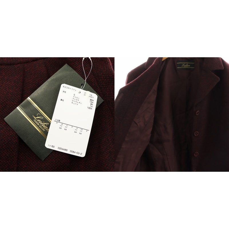 未使用品 レリアン Leilian スーツ セットアップ ジャケット フレアスカート ひざ丈 アンゴラ混 9 赤 レッド 黒