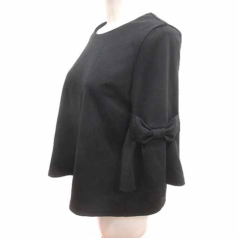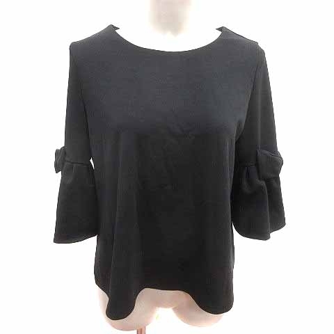 アールピーエス r.p.s カットソー リボン 七分袖 F 黒 ブラック /YK レディース