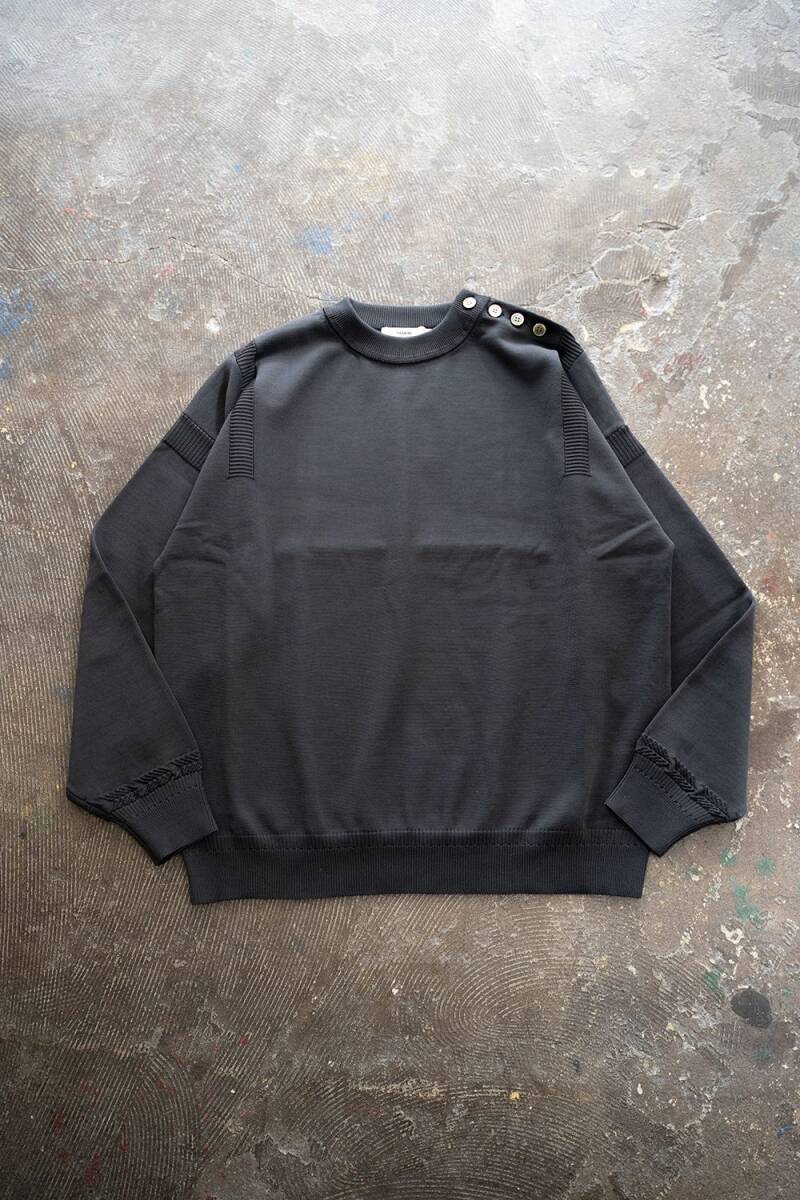 使用している生地は、12ゲージの編み機に80番手双糸を8本取りして編み立てており、密度が高いギュッと詰まった生地です。