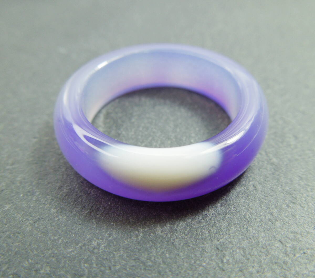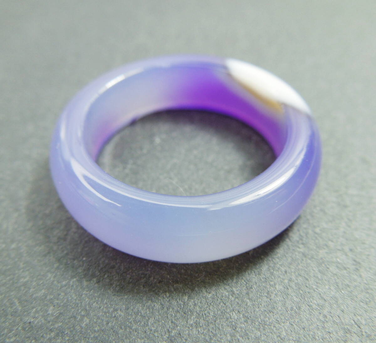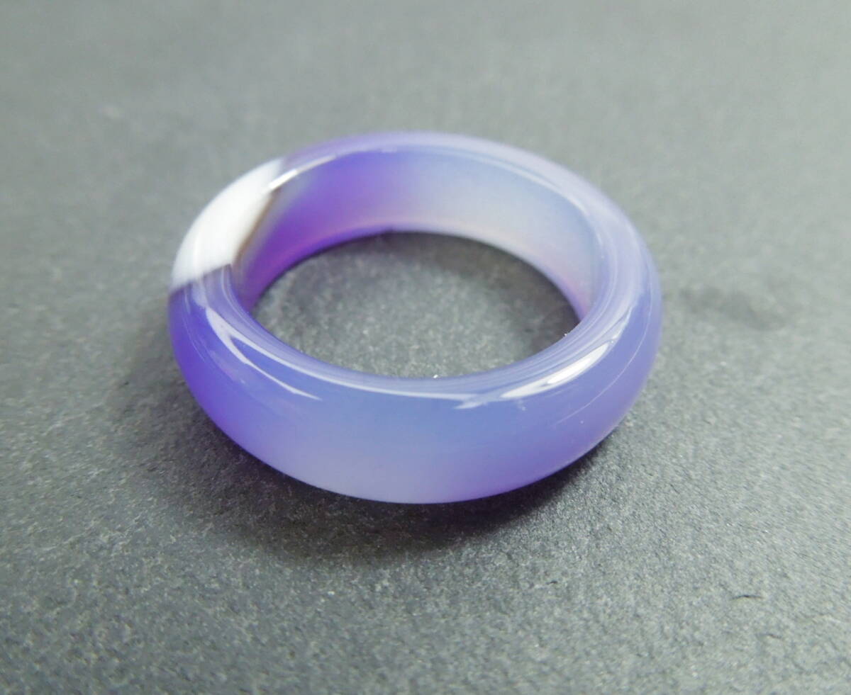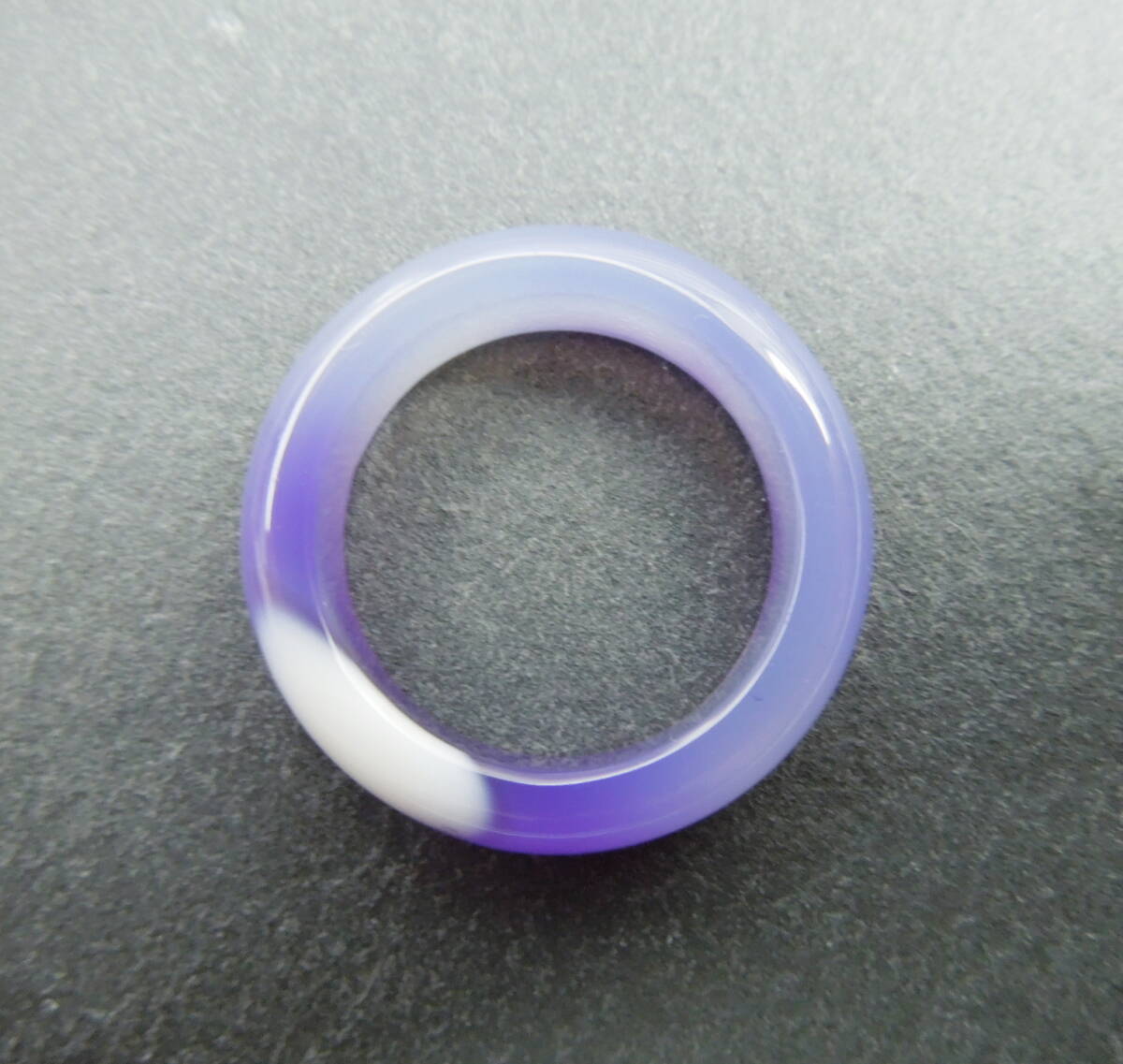 L32 メノウリング 約14号 パープル系 瑪瑙指輪 くりぬきリング 天然石 紫 ライトパープル ホワイト 白 金属アレルギー対策 新品 くり抜き
