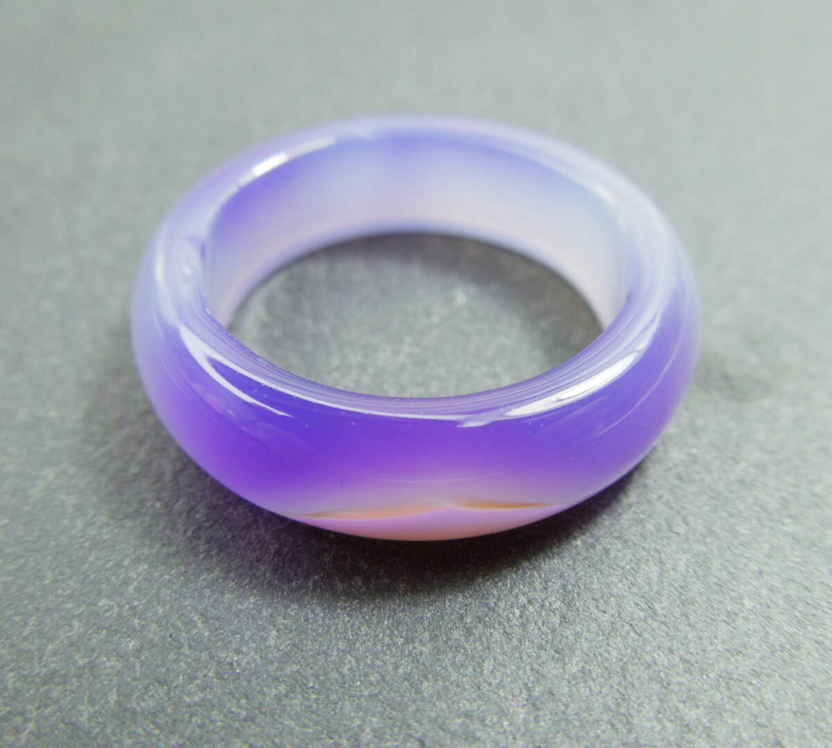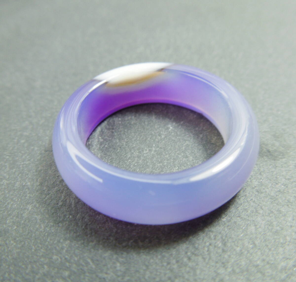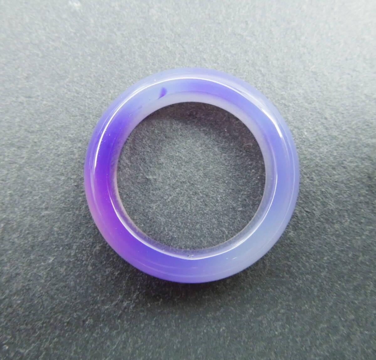 L32 メノウリング 約14号 パープル系 瑪瑙指輪 くりぬきリング 天然石 紫 ライトパープル ホワイト 白 金属アレルギー対策 新品 くり抜き