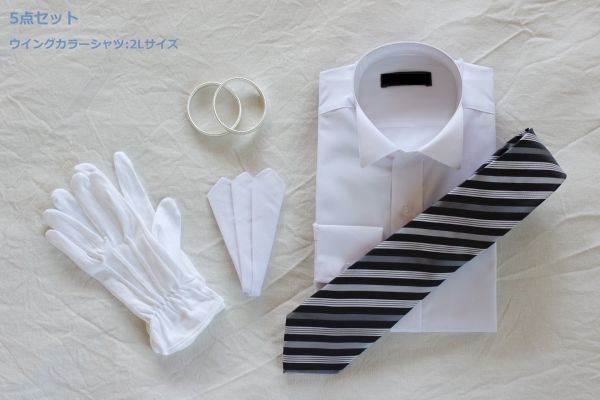▼新品即決▼結婚式衣装 新郎・父親用 小物5点フルセット ウイングカラーシャツ サイズ2L▼燕尾服・モーニング▼