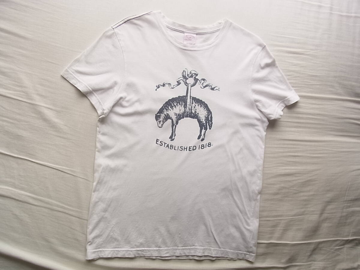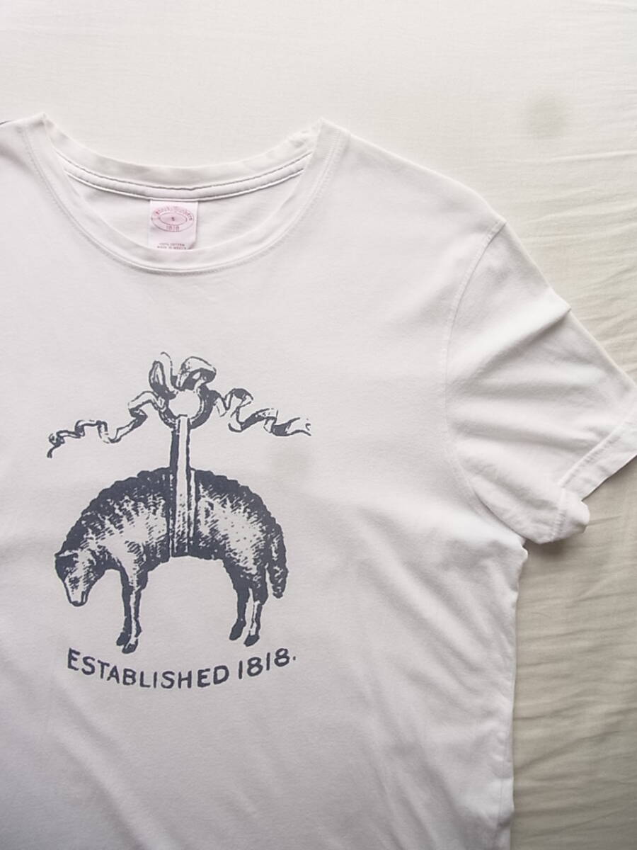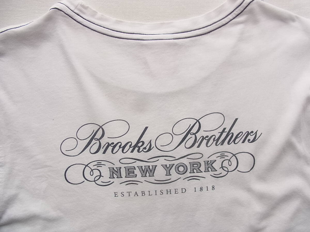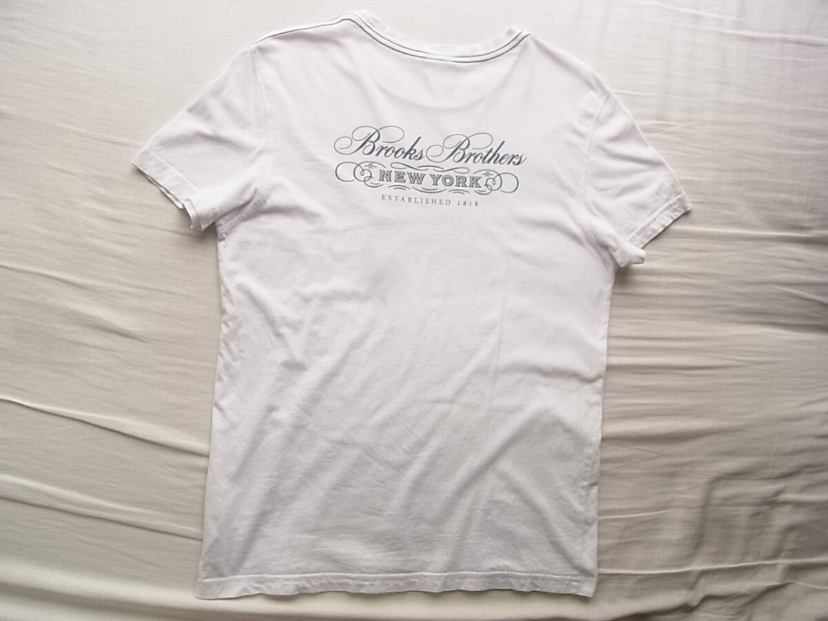 ブルックスブラザーズの前後プリント入りのTシャツになります。USEDで着用感と、衿部分に7~8枚目の画像の様にスレ、薄く汚れた箇所が御座います。