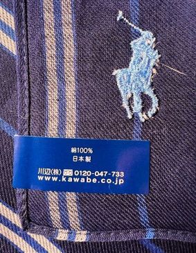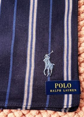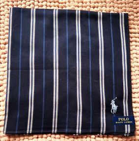 【新品・タグ付・日本製】Polo Ralph Lauren ポロラルフローレン 濃紺色地にストライプ柄大判ハンカチ 男女兼用