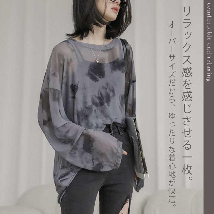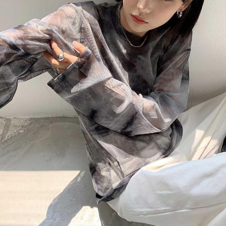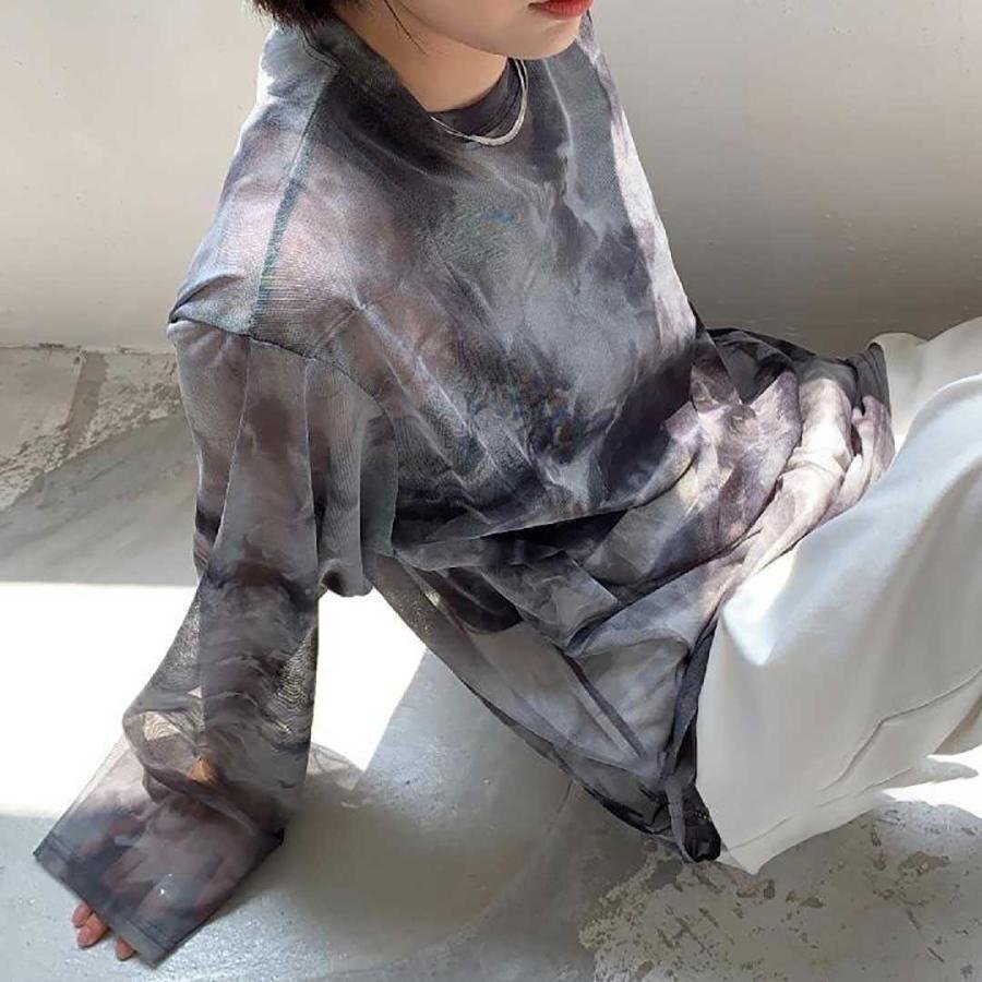 トップス シアー タイダイ 長袖 フリーサイズ ブラック Tシャツ ダンス衣装 韓国ファッション スケスケ かっこいいトップス レディース