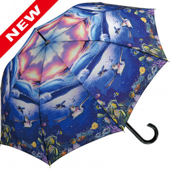 | ラッセンのアートをダイナミックに使用したスタイリッシュなジャンプ傘!傘を広げれば、水面を見上げたような神秘的な世界が広がります。 |