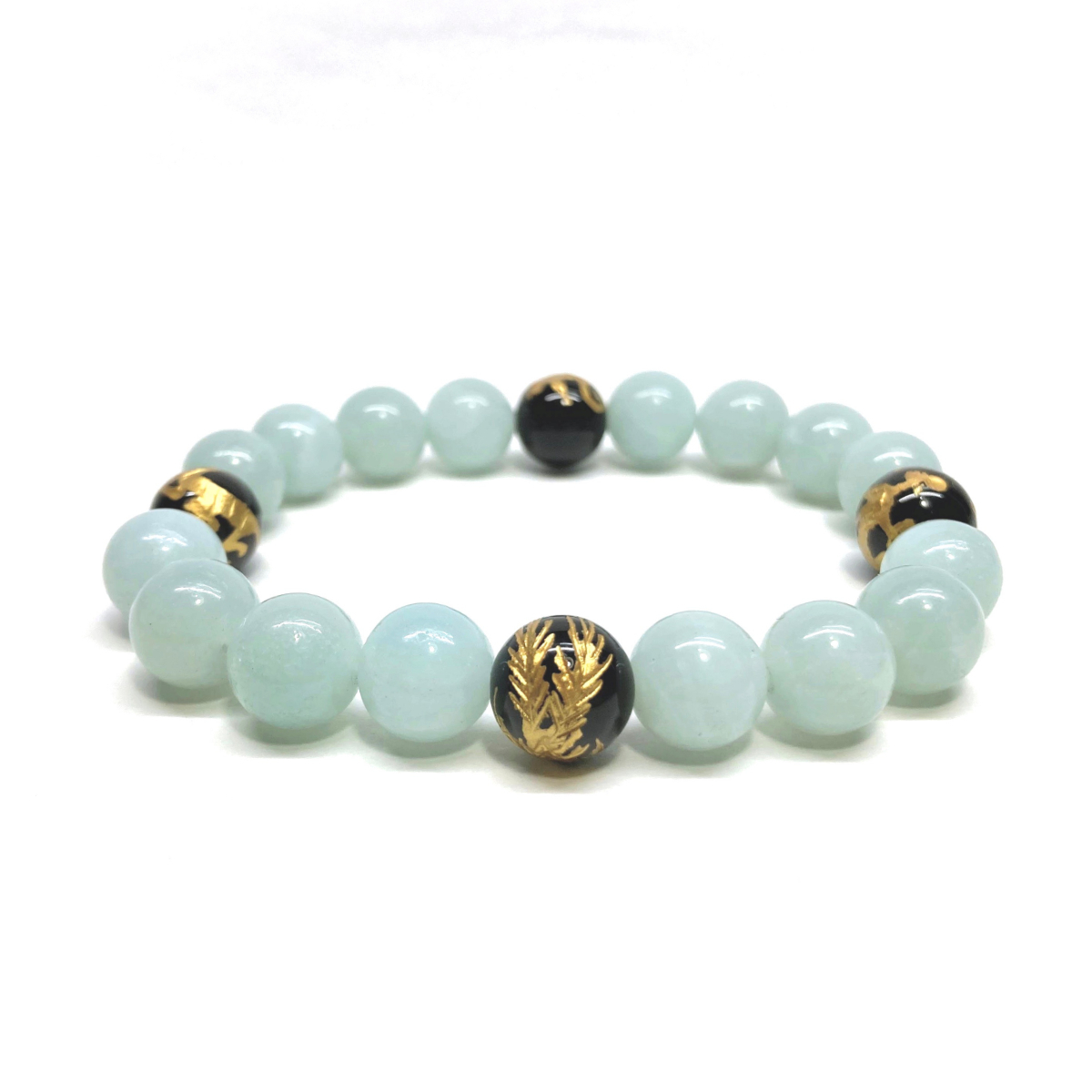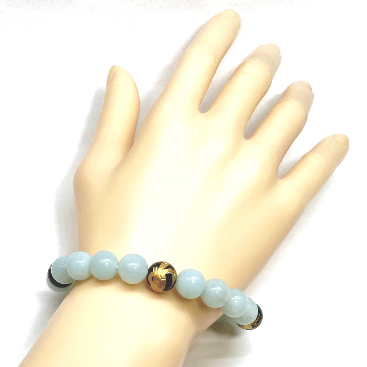 10mm 四神獣金彫オニキス×アマゾナイト パワーストーン ブレスレット天然石 運気上昇 開運 金運 恋愛 青龍 白虎 玄武 朱雀 ☆